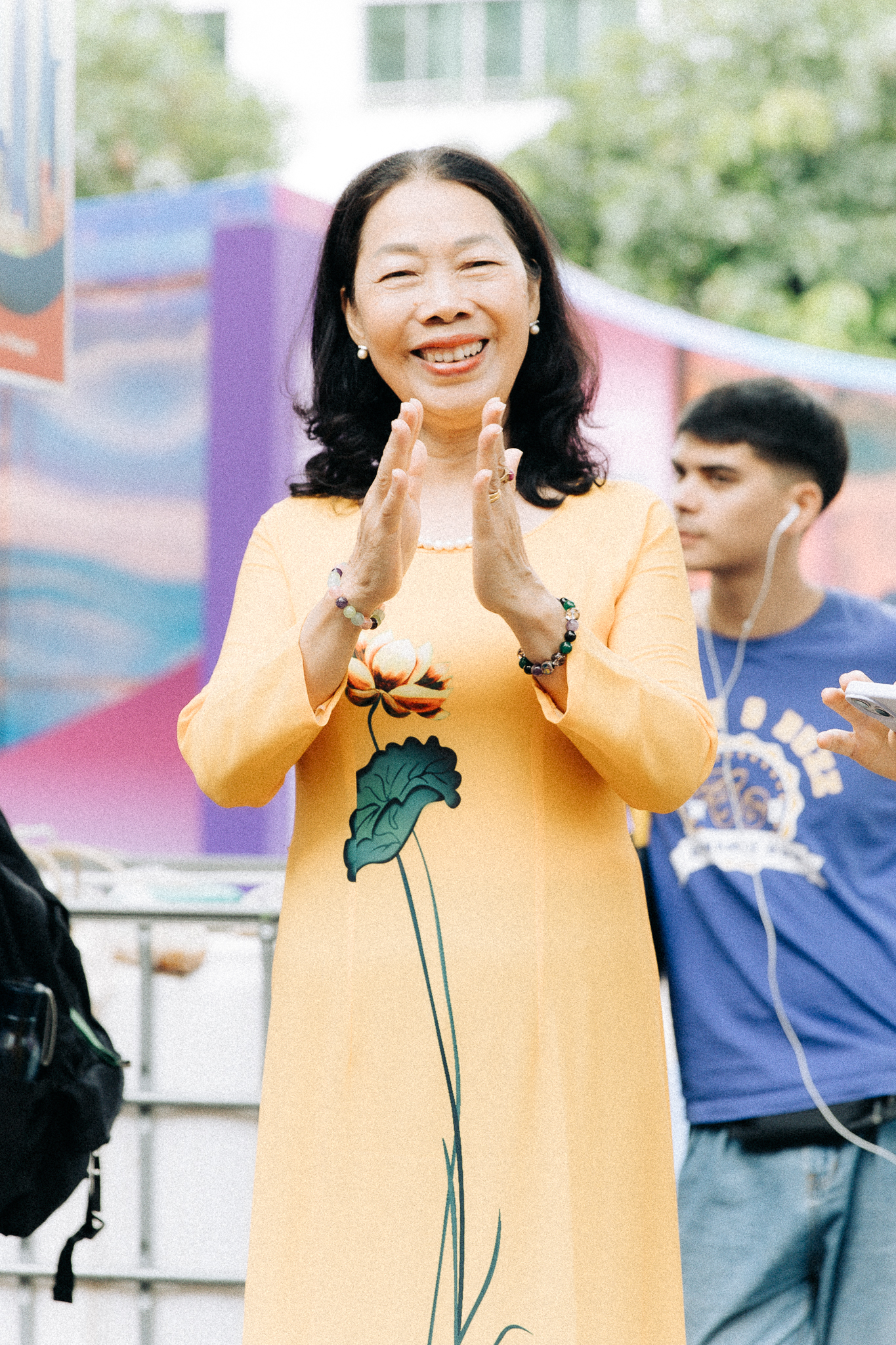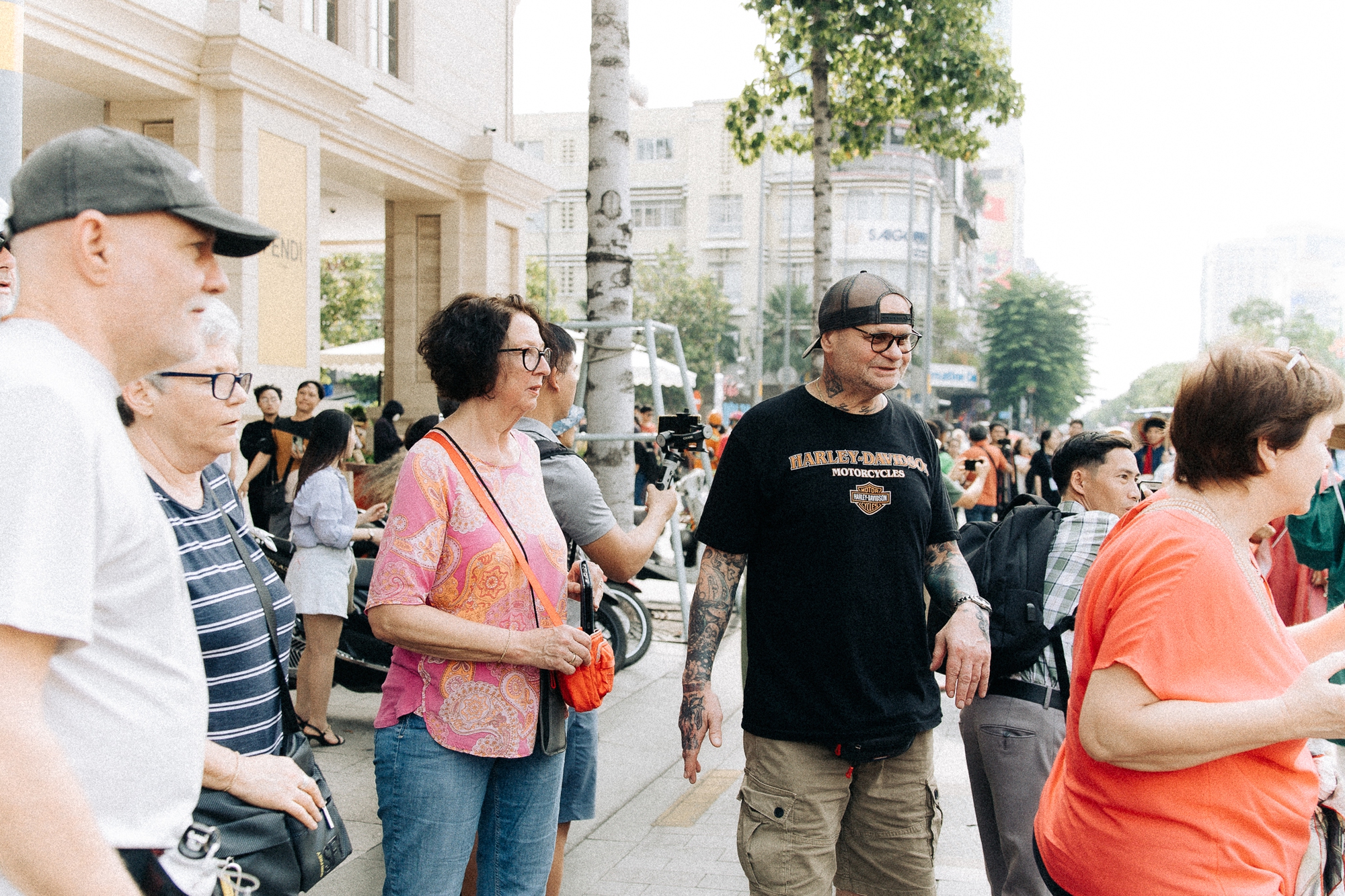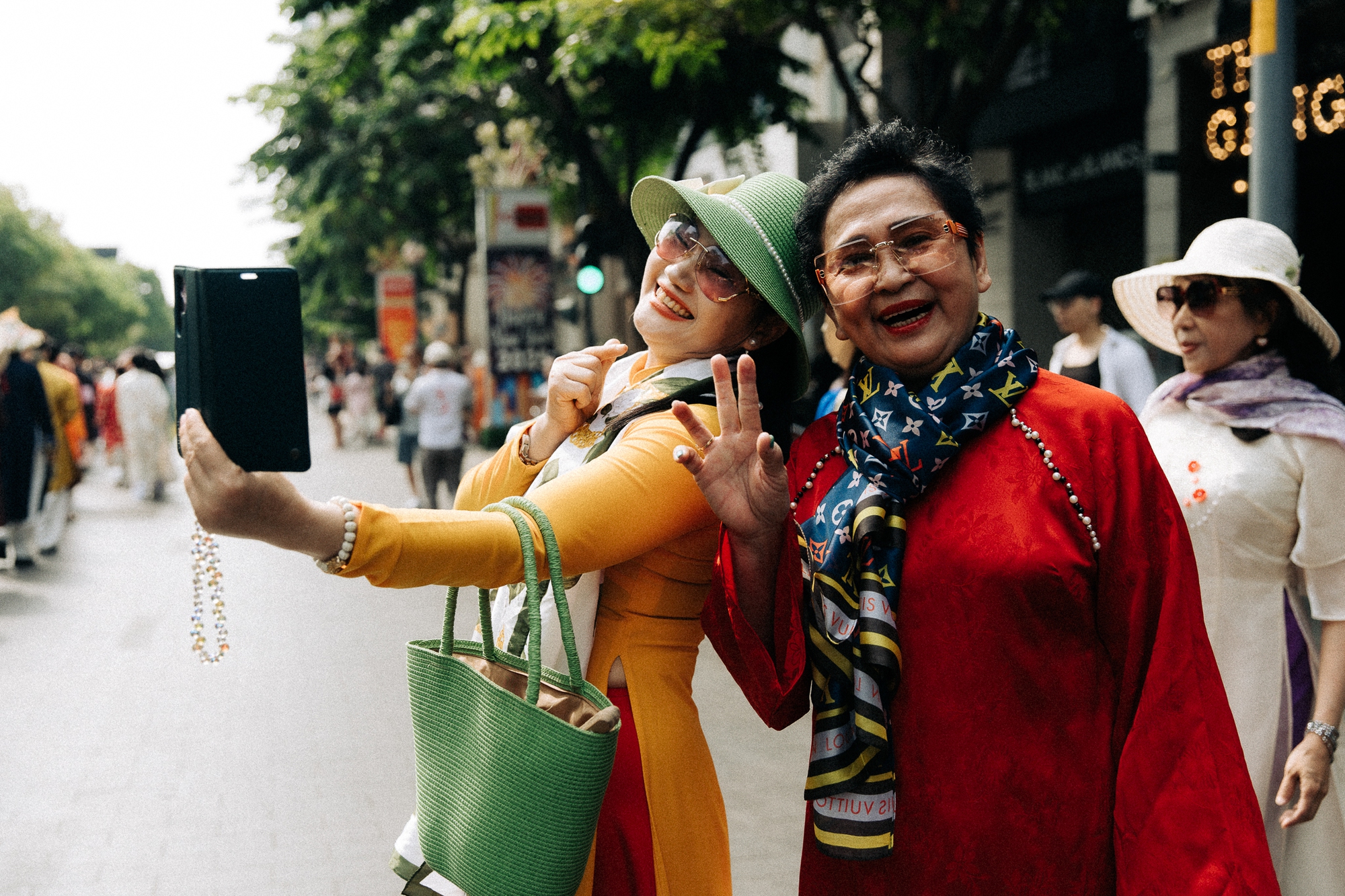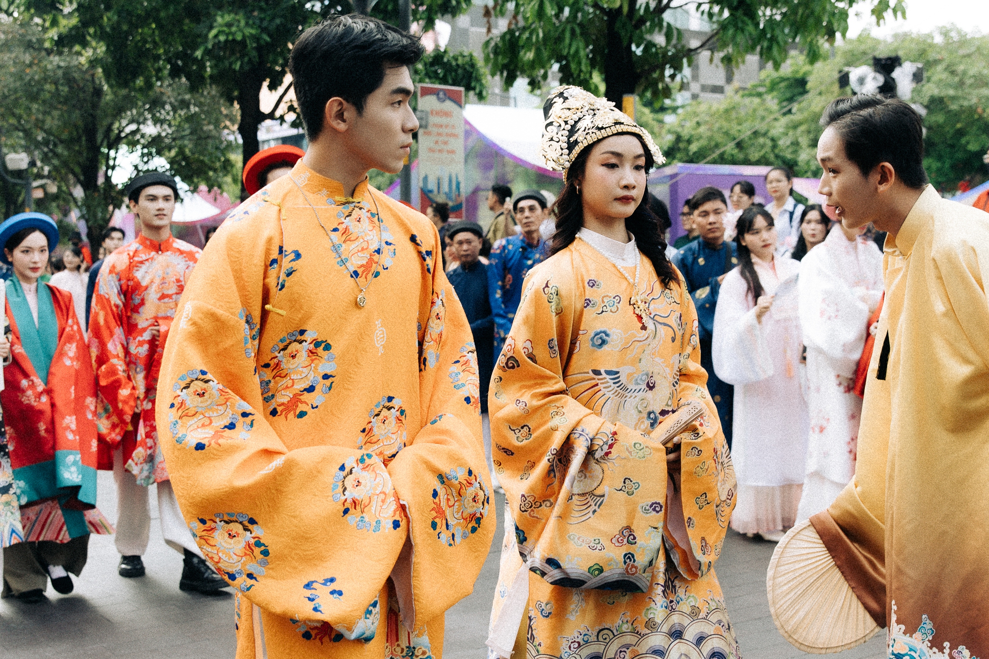 Du khách nước ngoài và người dân địa phương không khỏi bất ngờ và thích thú khi được chứng kiến cảnh tượng hiếm có. Nhiều du khách quốc tế liên tục ghi lại hình ảnh và dành những lời khen ngợi trước vẻ đẹp đầy tinh tế của những bộ trang phục và sự nhiệt huyết của người trẻ tham gia diễu hành.