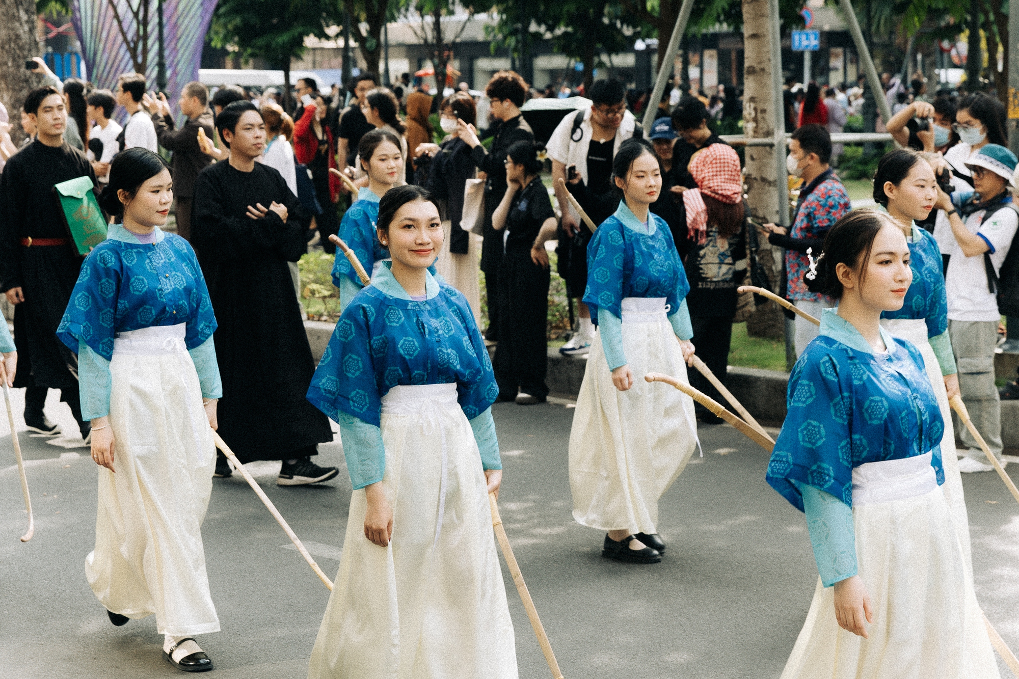 Ngày 8/3/2025, ngay từ sáng hơn 2.000 người trong những bộ cổ phục rực rỡ đã phủ kín các tuyến đường trung tâm TP.HCM như Nguyễn Huệ, Lê Lợi và Công viên 23 Tháng 9, tạo nên một không khí sôi động hiếm thấy. Lần đầu tiên xuất hiện tại thành phố mang tên Bác, sự kiện "Bách Hoa Bộ Hành" nhanh chóng thu hút sự tò mò, thích thú và hào hứng của đông đảo người dân. Chỉ mới sáng sớm, cả khu vực quận 1 đã rộn ràng chuẩn bị cho màn diễu hành đầy màu sắc, mở ra một ngày hội Việt phục vô cùng đặc sắc.
