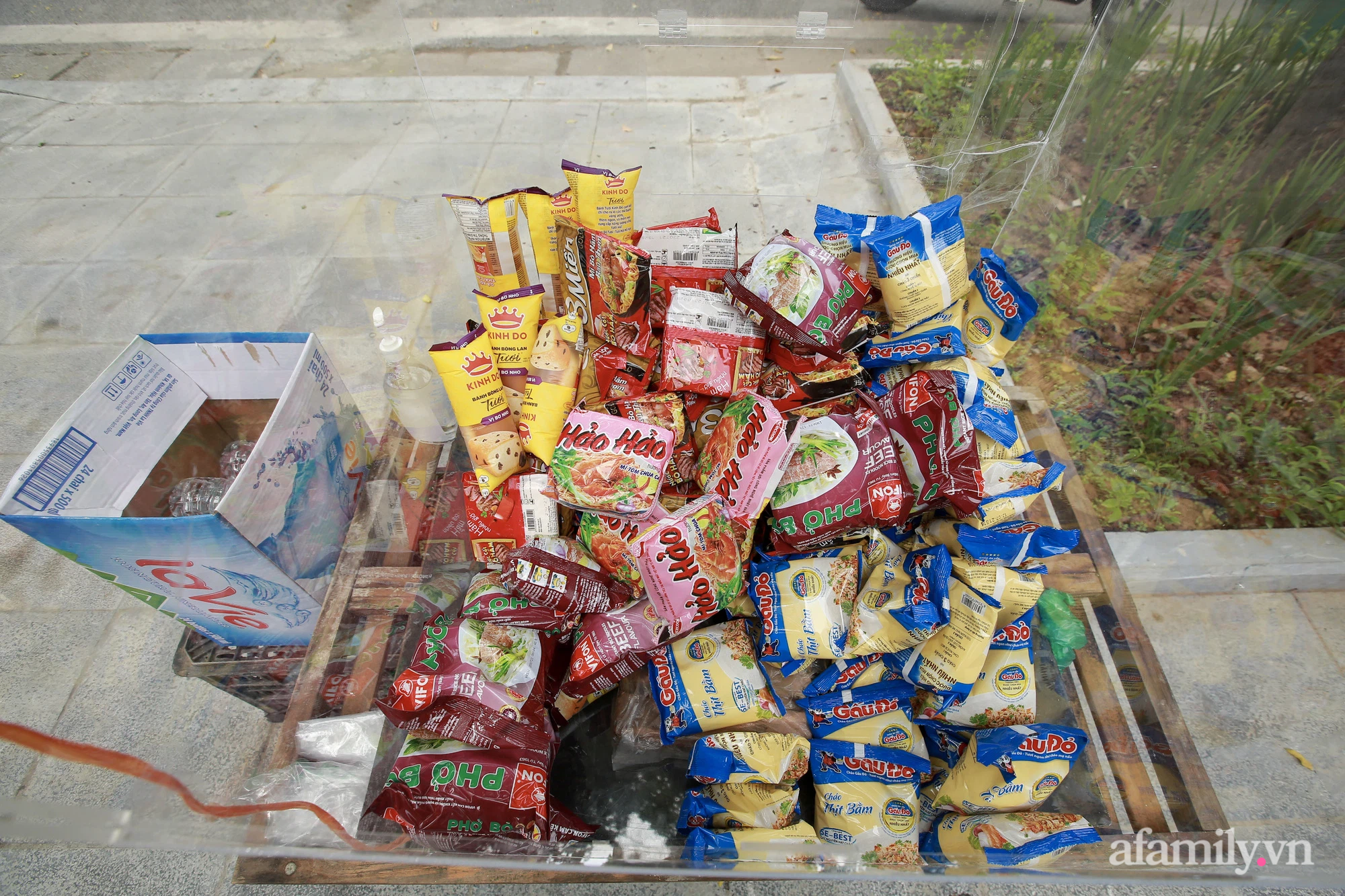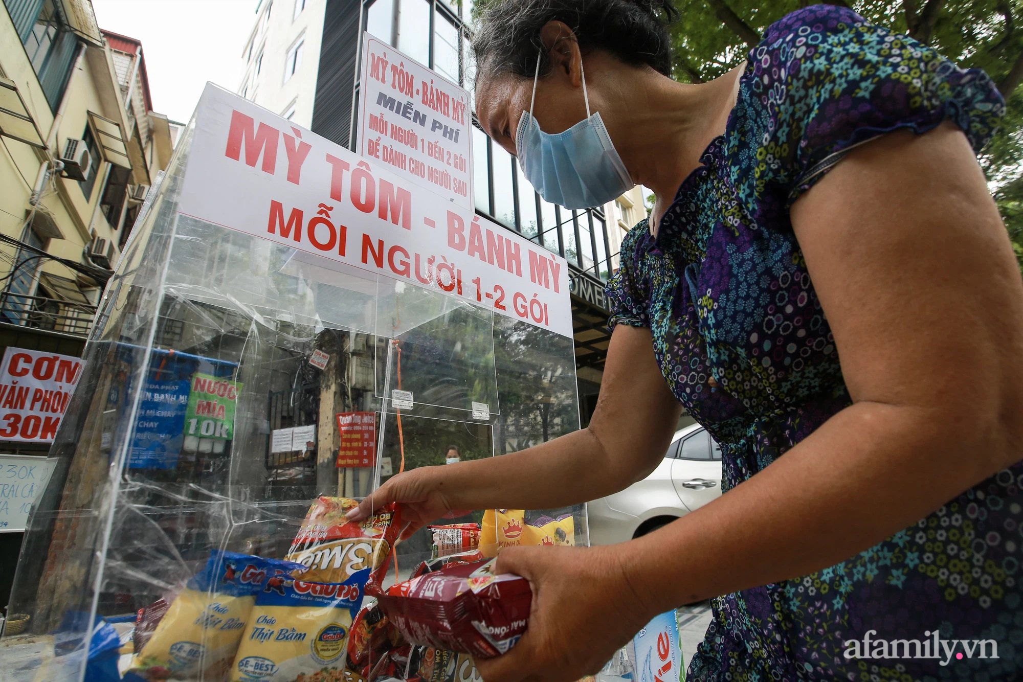 "Một hai gói mì tôm trong lúc này không nhiều nhưng gia đình tôi muốn gửi gắm mọi người đó là tình cảm. Ai đi ngang qua khó khăn thì lấy, một miếng khi đói bằng một gói khi no", một người dân chia sẻ.
