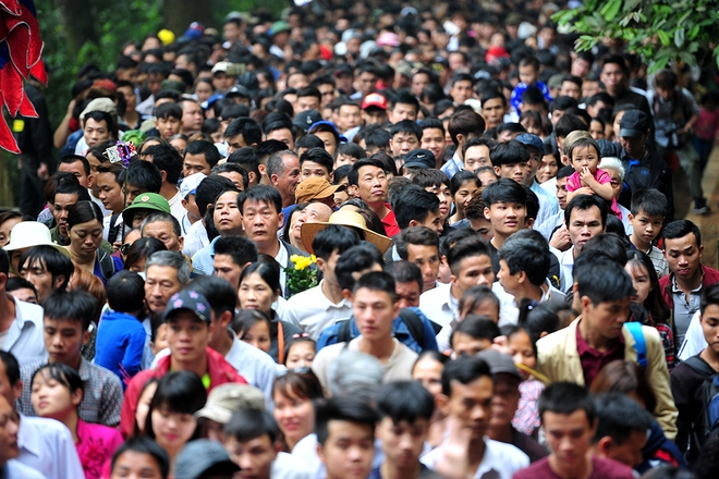 | Dù dưới chân núi Nghĩa Lĩnh vãn người nhưng đường lên núi nhỏ, lại tập trung đông nên dòng người nhích dần từng bước chân trong vài chục phút. |