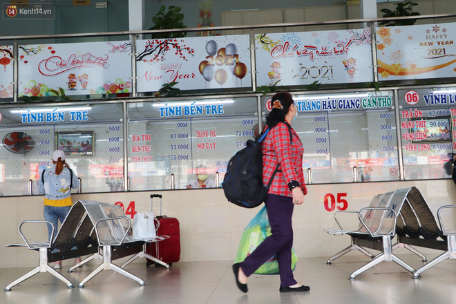 8h sáng 6/2 (tức 25 tháng Chạp), bến xe miền Tây vắng vẻ lạ thường, từ quầy bán vé đến bãi xe đều thưa thớt khách. Nếu như những năm trước, người dân phải xếp hàng dài đợi mua vé thì do ảnh hưởng của dịch Covid-19, lượng khách về quê đón Tết Tân Sửu 2021 đã giảm đi rất nhiều.