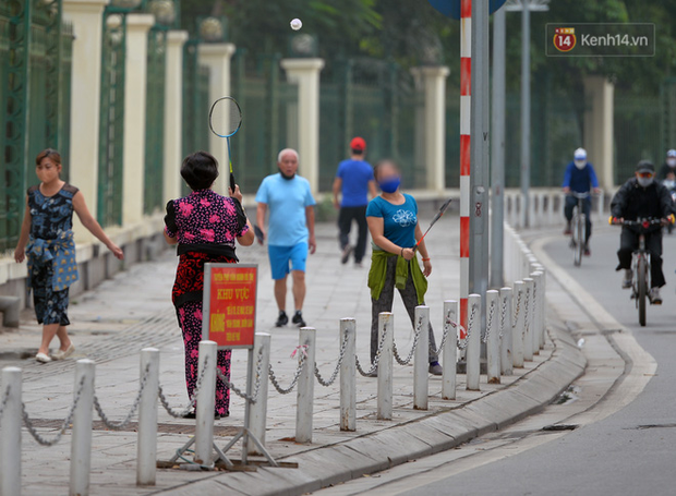 Trên vỉa hè, hàng chục người già trẻ nhỏ vô tư đi lại, trò chuyện, đa số đều đeo khẩu trang nhưng vẫn có những người lại không hề có biện pháp phòng vệ nào. Đáng chú ý, dù có lực lượng chức năng phát loa nhắc nhở, vận động về nhà để đảm bảo sức khoẻ, rất nhiều người chỉ chấp hành chống đối rồi sau đó lại quay lại tiếp tục hoạt động thể dục, thể thao khi lực lượng chức năng đi nơi khác.