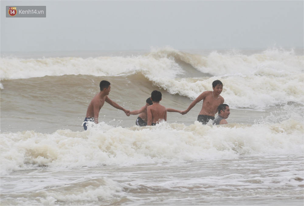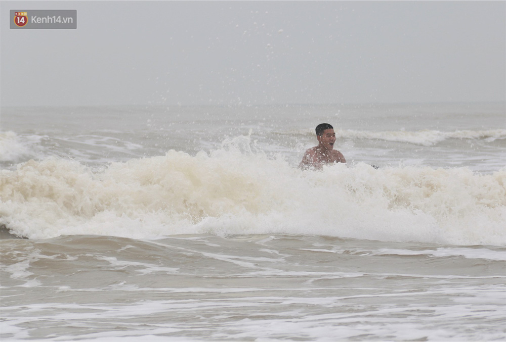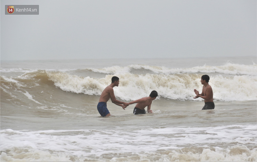 Mặc dù bão số 13 vừa đi qua và biển Đà Nẵng vẫn còn động dữ dội, sóng cao phủ đầu nhưng nhiều người dân, du khách trong đó có trẻ nhỏ vẫn bất chấp nguy hiểm xuống tắm.