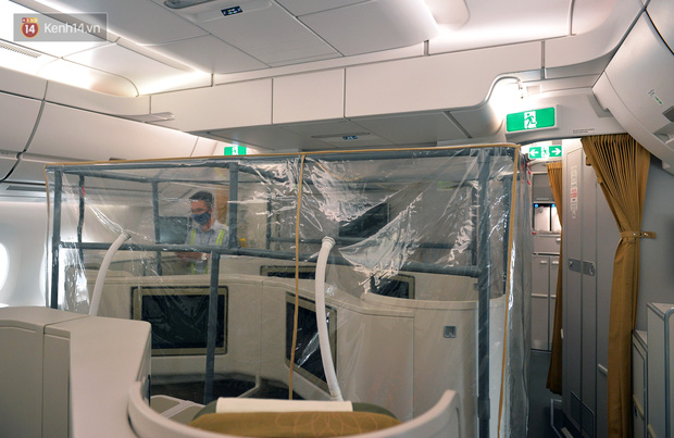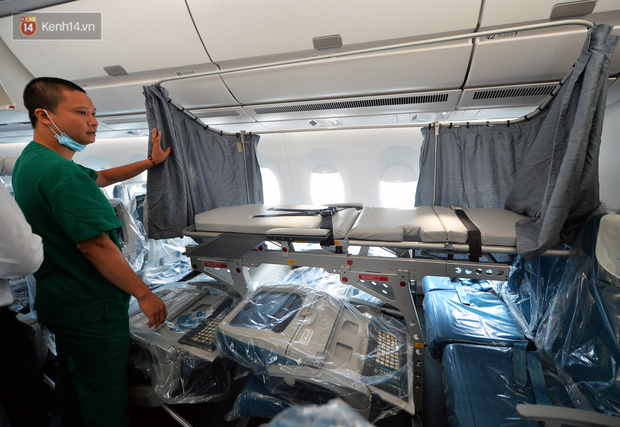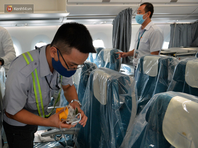 325 ghế trên máy bay Airbus A350 đều được bọc kín nilông và cài vào mỗi lưng ghế 5 khăn ướt tẩm cồn, 1 túi rác và 1 tờ hướng dẫn hành khách. Để chống lây nhiễm chéo, trên máy bay có 4 buồng áp lực dương, mỗi buồng có trọng lượng 7-8kg.