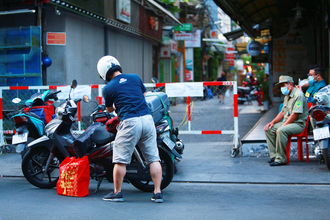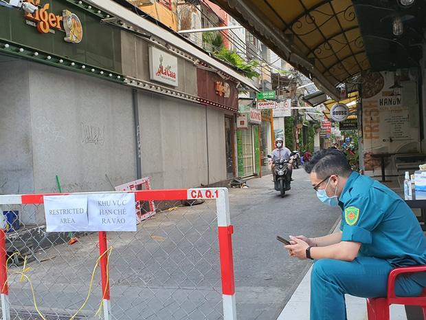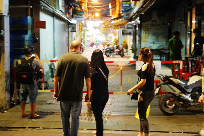 Theo ghi nhận của PV, từ chiều đến tối cùng ngày, con hẻm 40 đường Bùi Viện được dựng rào chắn, hạn chế ra vào. Lực lượng chức năng cũng túc trực ngoài đầu hẻm, không cho bất cứ ai từ ngoài vào con hẻm trên.