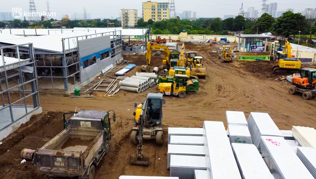 Sau nửa tháng với khoảng 500 công nhân thần tốc xây dựng, một số hạng mục của bệnh viện dã chiến hồi sức điều trị cho bệnh nhân Covid-19 tại quận Hoàng Mai cơ bản đã hoàn thiện.