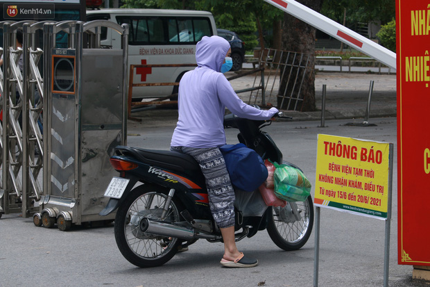 Theo ghi nhận, hiện bệnh viện Đa khoa Đức Giang (Long Biên, Hà Nội) đã ngừng tiếp nhận bệnh nhân từ sáng 15/6. Trưa cùng ngày, rất nhiều người thân đã gửi đồ tiếp tế cho các bệnh nhân đang nằm viện và bác sĩ đang làm việc tại đây.