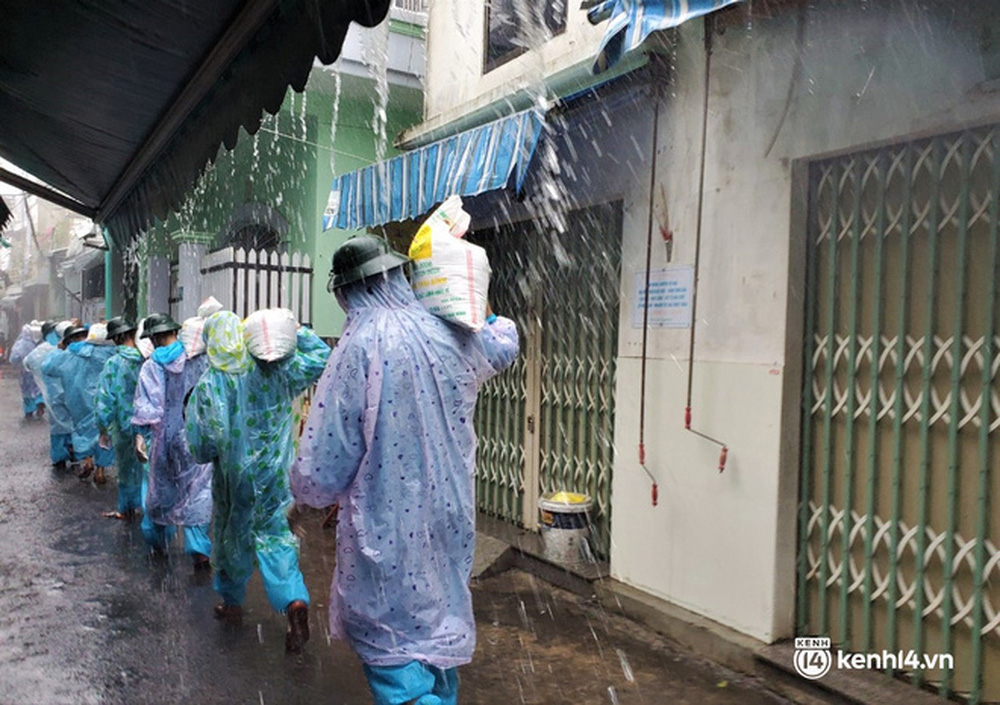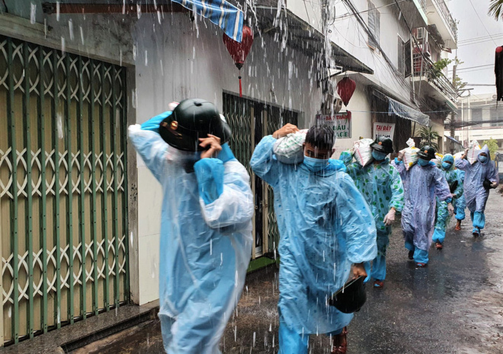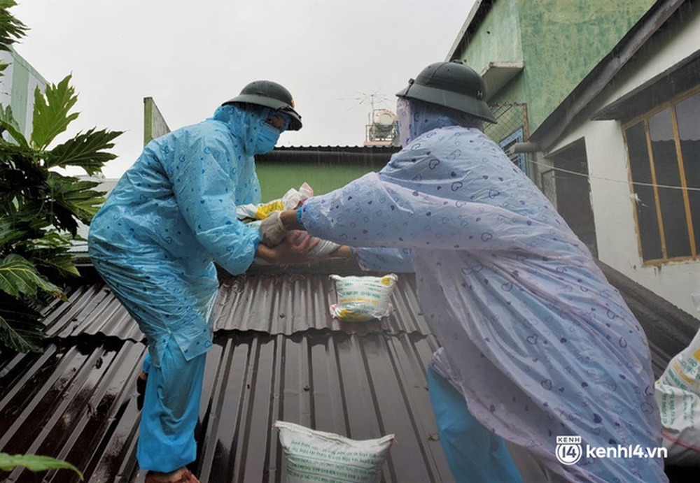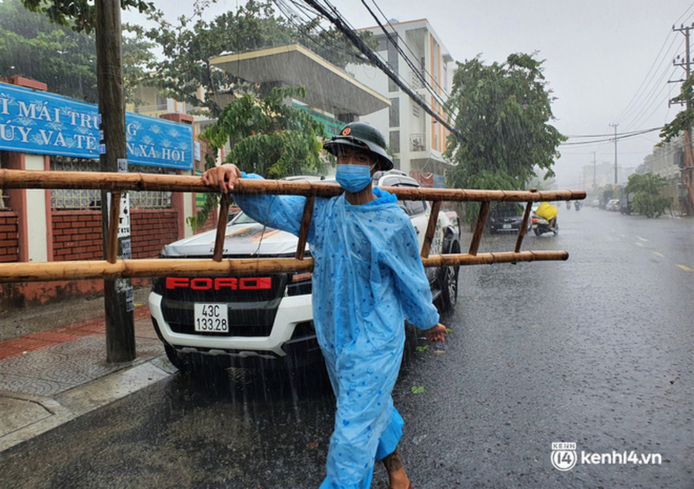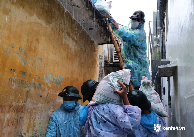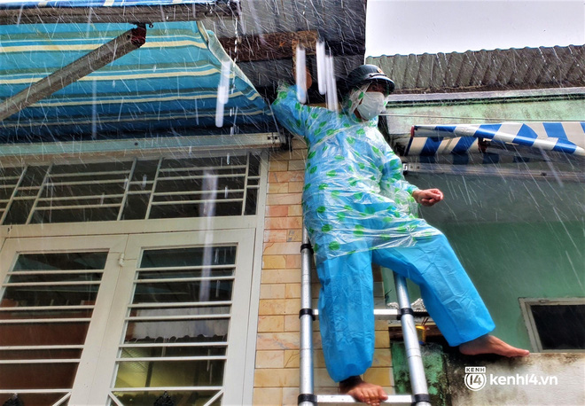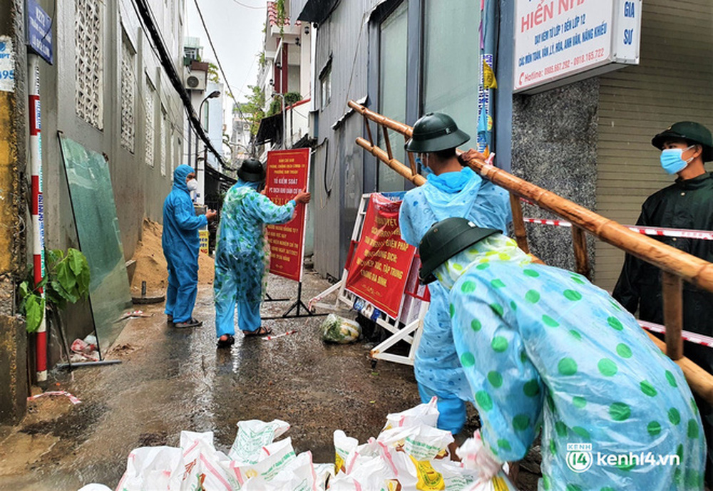 Hơn 50 cán bộ, chiến sĩ của Trung đoàn 971 - Bộ Chỉ huy quân sự TP Đà Nẵng đã đội mưa đến từng nhà trong "vùng đỏ" đang bị phong tỏa vì dịch Covid-19 để giúp người dân chằng chống nhà cửa trước giờ bão số 5 đổ bộ.