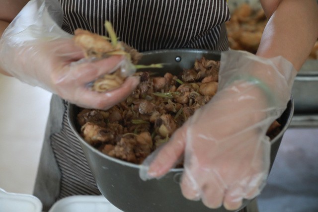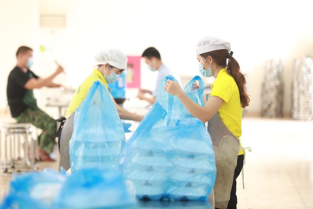 Hình ảnh PV Báo Gia đình & Xã hội ghi lại quá trình làm ra 2.400 suất ăn cho người được theo dõi COVID-19:
