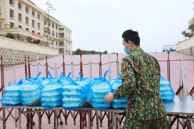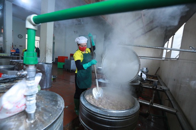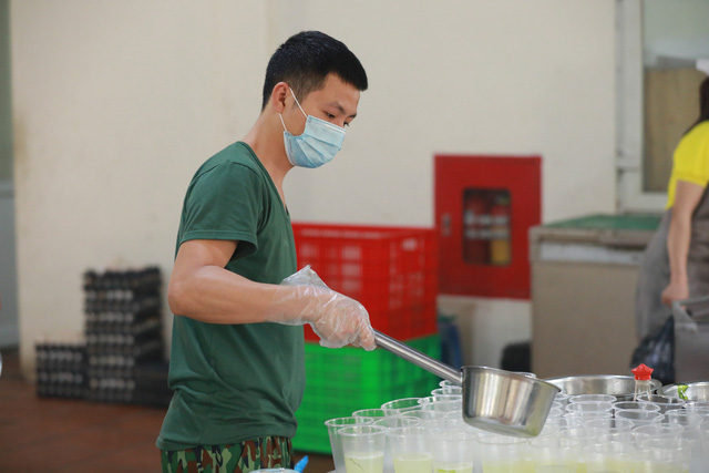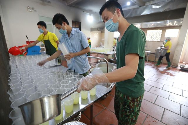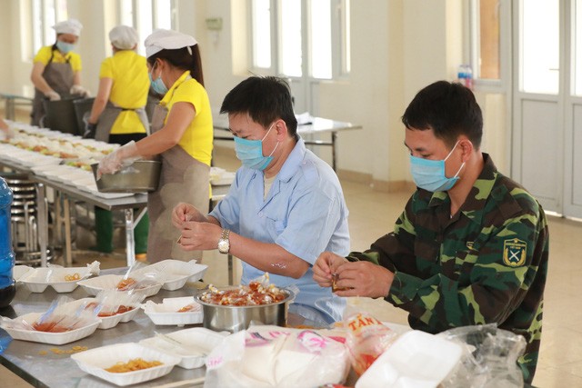 Để có được những bữa cơm nóng hổi với đa dạng các món ăn thuần Việt dành cho những người đang được cách ly theo dõi COVID-19, các cán bộ, nhân viên thuộc Trường quân sự Bộ Tư lệnh Thủ đô (ở Sơn Tây, Hà Nội) phải chuẩn bị từ trước 3h sáng hàng ngày.