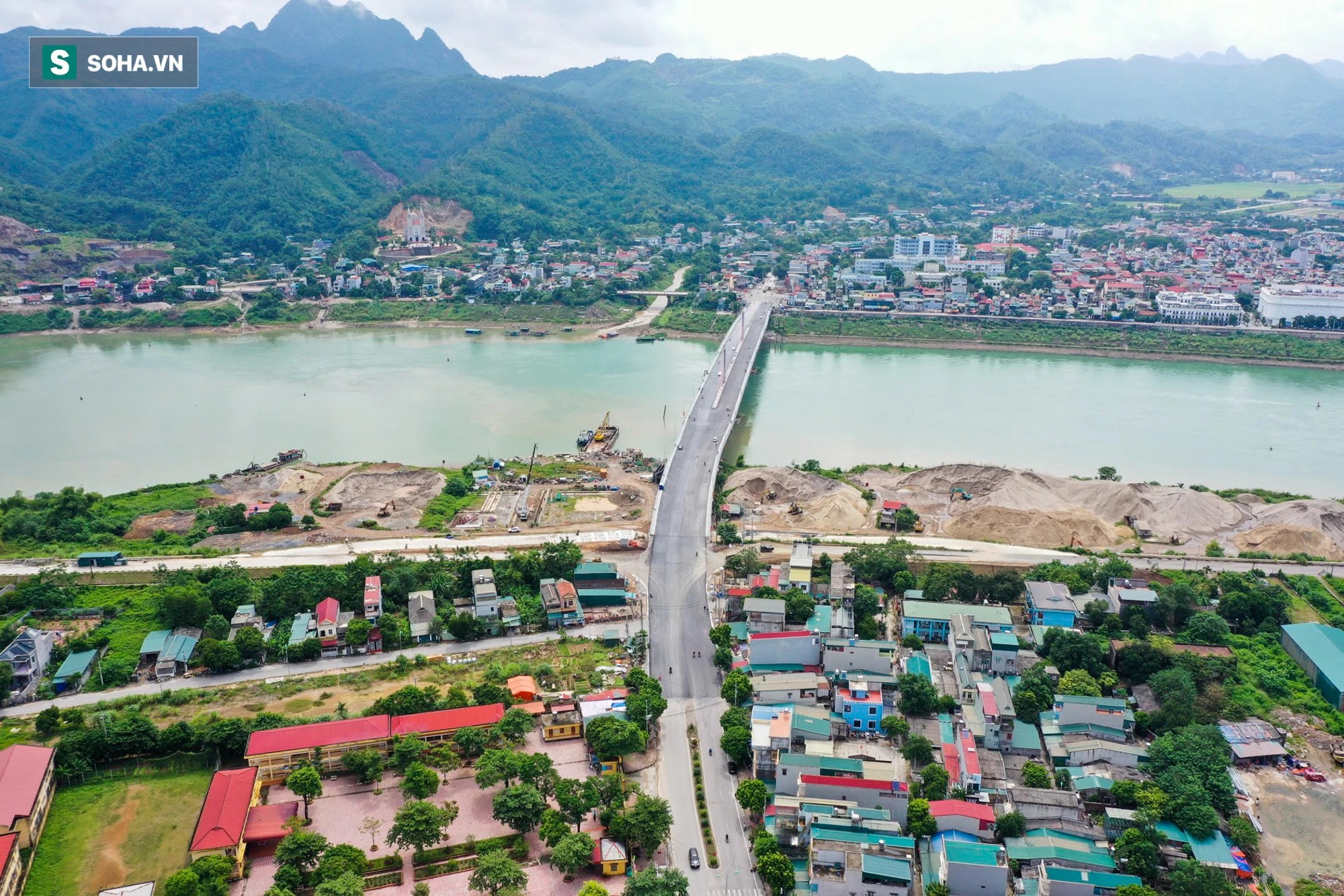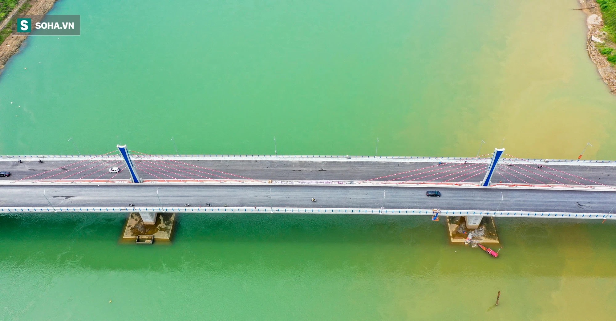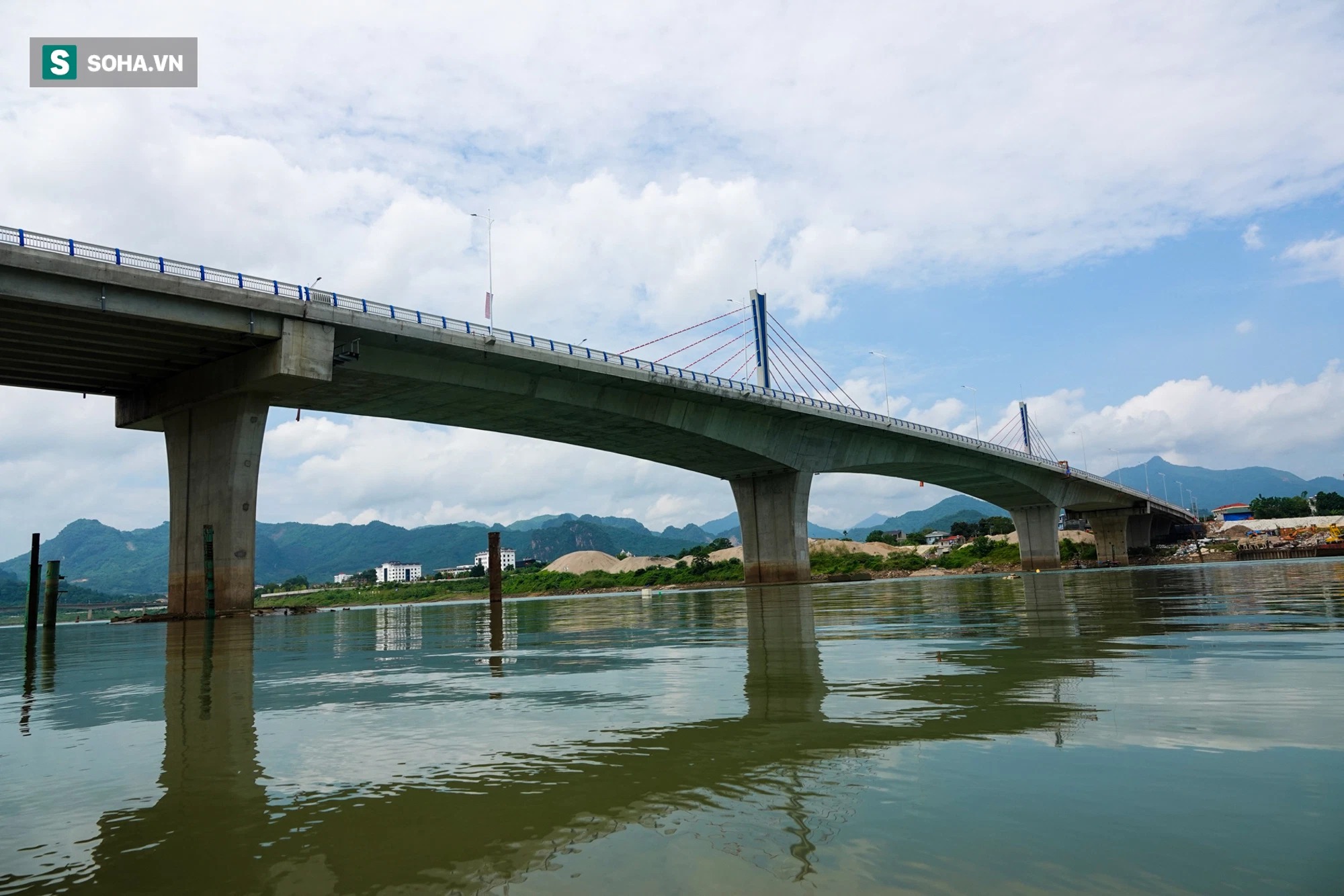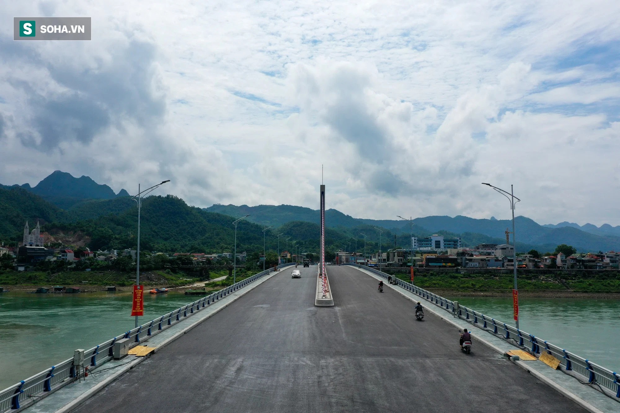 | Toàn cảnh cầu Hoà Bình 2 trị giá gần 600 tỷ bắc qua sông Đà đã được thông xe. |