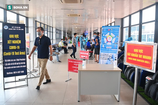Theo yêu cầu, tất cả hành khách trên các chuyến bay đi/đến TP.HCM phải có giấy xét nghiệm âm tính với SARS-CoV-2, nên sân bay Nội Bài đã mở dịch vụ test nhanh cho hành khách với giá 238.000 đồng mỗi lần.