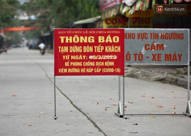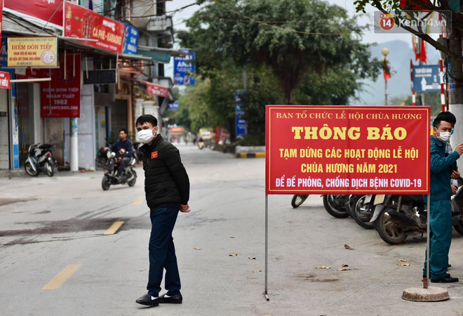 Hàng quán hai bên đều được yêu cầu đóng cửa. Ban tổ chức lễ hội chùa Hương đã thông báo tạm dừng đón tiếp khách từ ngày 16/2/2021 để phòng chống dịch bệnh.
