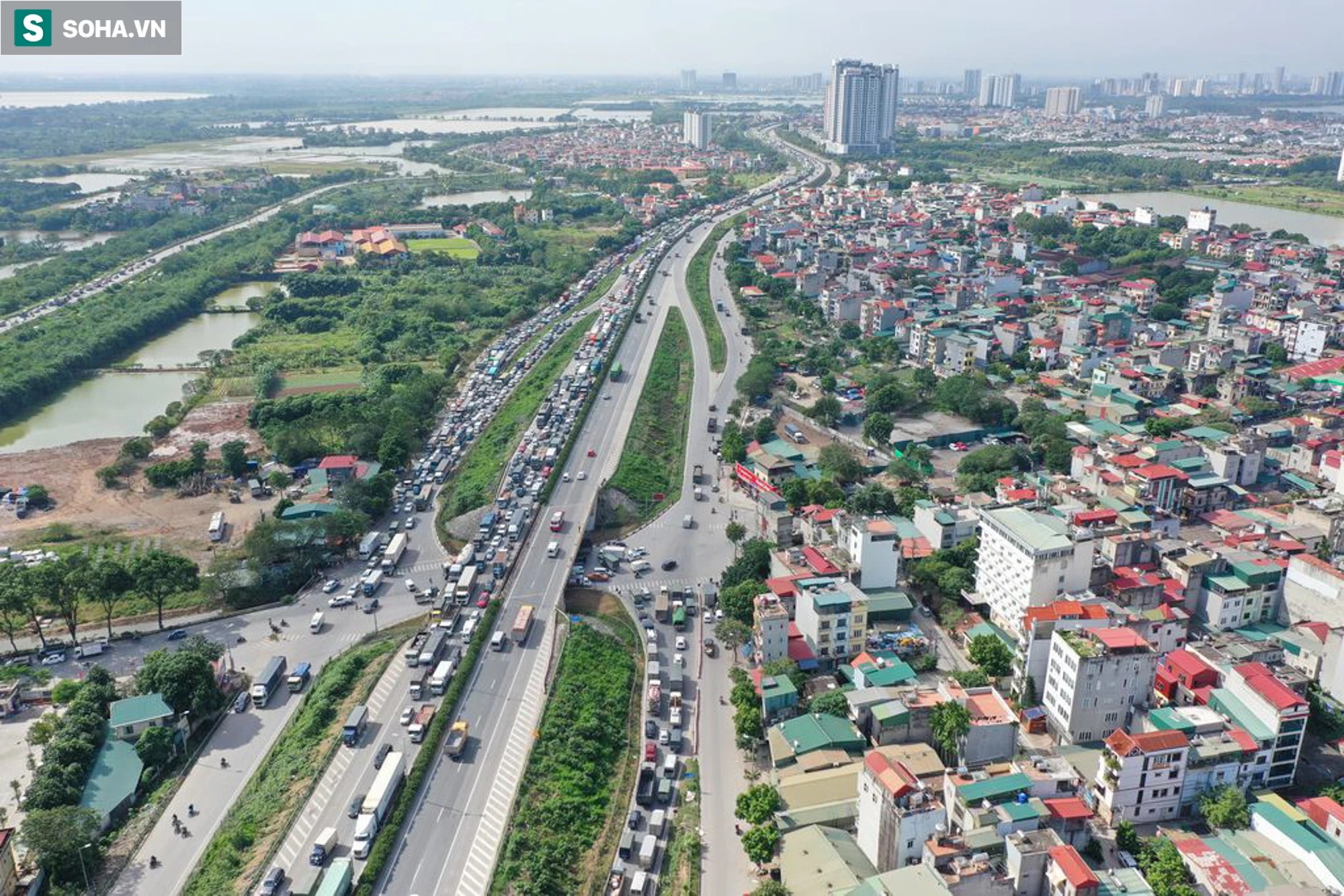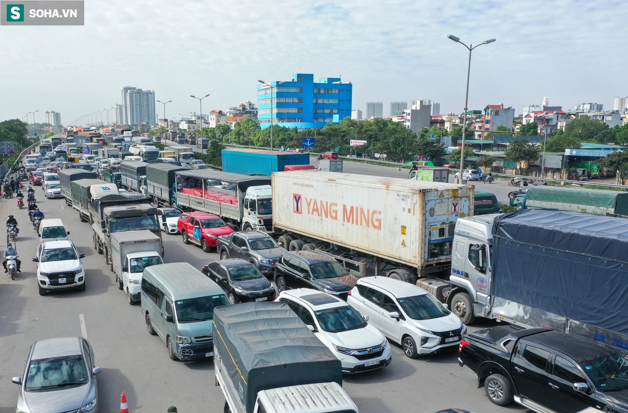 Theo chỉ huy Đội CSGT số 14, đường vành đai 3 trên cao ùn tắc hơn 10km và kéo dài từ sáng đến chiều.