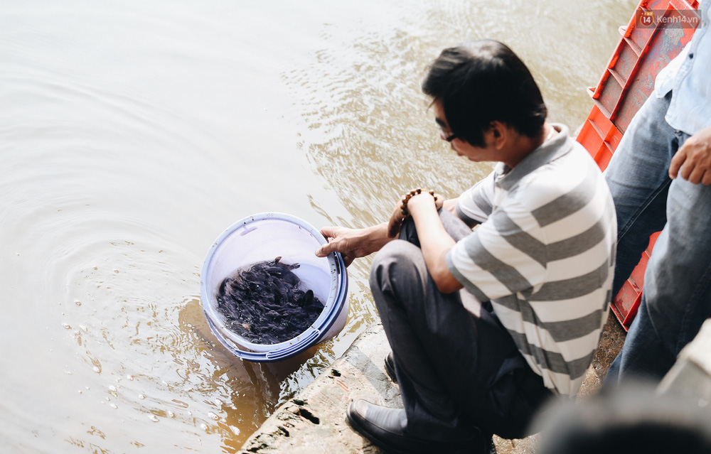 Theo ghi nhận tại chùa Diệu Pháp (quận Bình Thạnh, TP. HCM) nhiều người mang cá đến đây thắp hương cúng rồi phóng sinh xuống sông Sài Gòn. Tuy nhiên những người phóng sinh cá dịp cúng ông Táo lại thêm một lần nữa lắc đầu ngao ngán khi nhiều người bất chấp tất cả vẫn chờ sẵn để chích điện vớt ngay khi cá vừa được thả xuống sông.