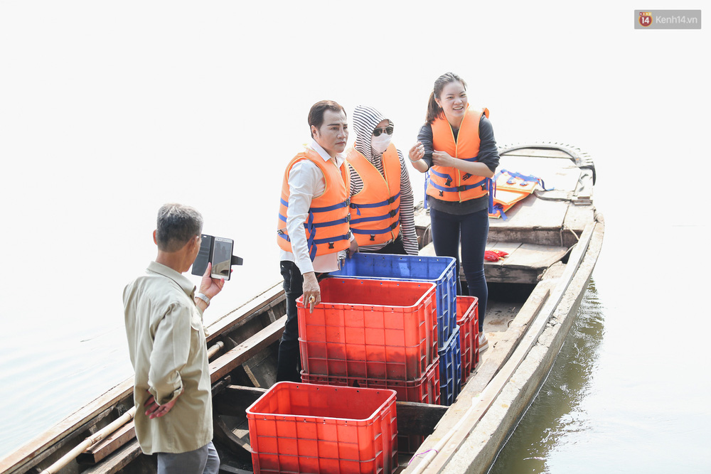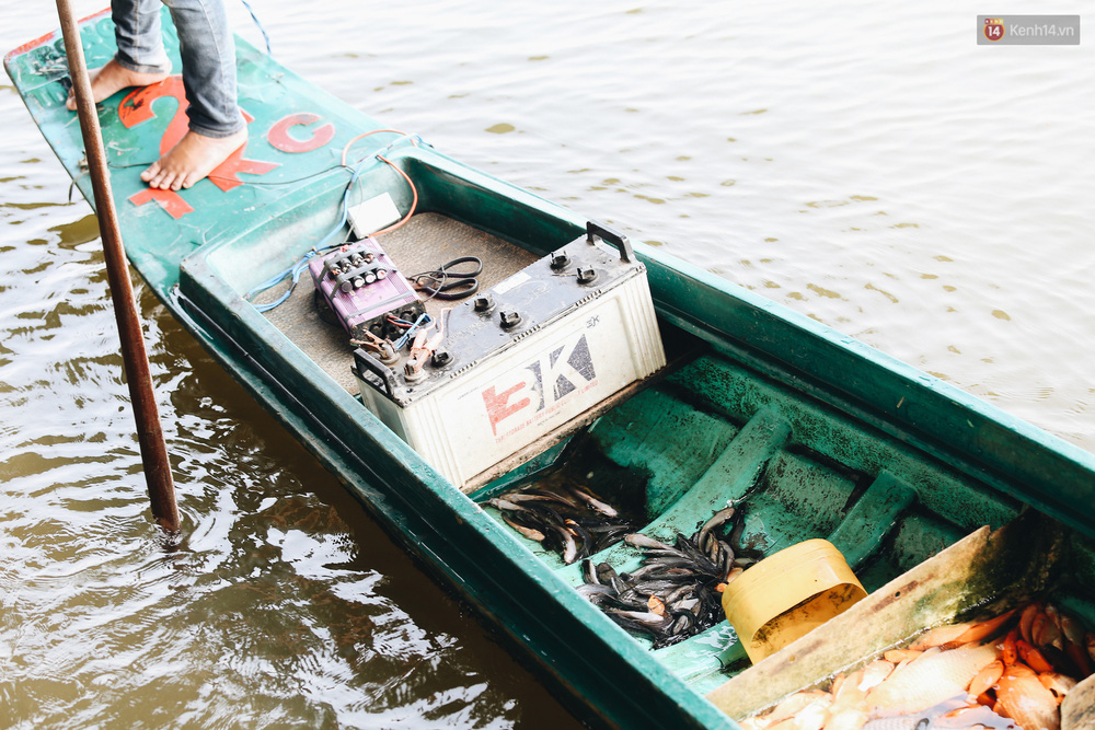 Do mua với số lượng hàng trăm con cá nên bà Huyền phải chở bằng thuyền ra giữa sông để phóng sinh nhằm hạn chế cá bị chết sau khi thả. Tuy nhiên, bà Huyền và người thân rất bất ngờ khi người chích điện bắt cá cũng đi thuyền máy ra tận giữa sông để vớt cá.