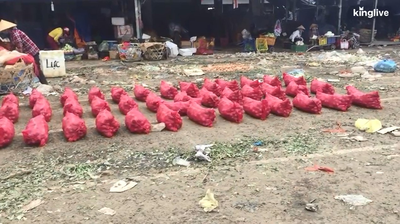 Đáng quan ngại hơn là tình trạng hành tím, hay một số loại Nông sản khô được nhập về, xếp lớp ngay trên nền chợ, bên cạnh đống rác, hoặc ngay bên trên bãi rác.