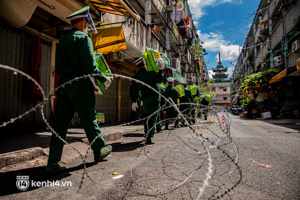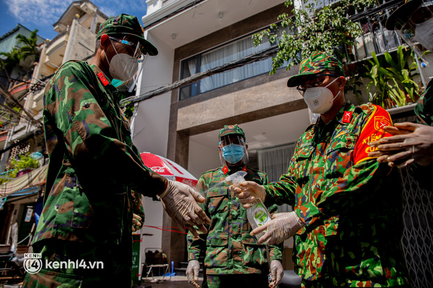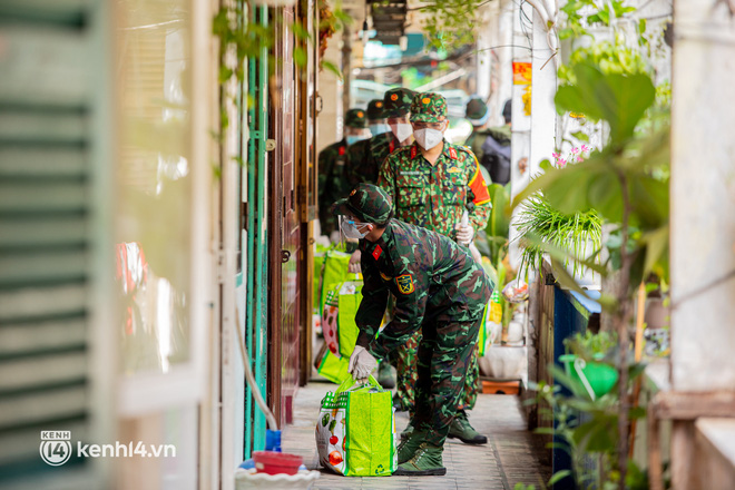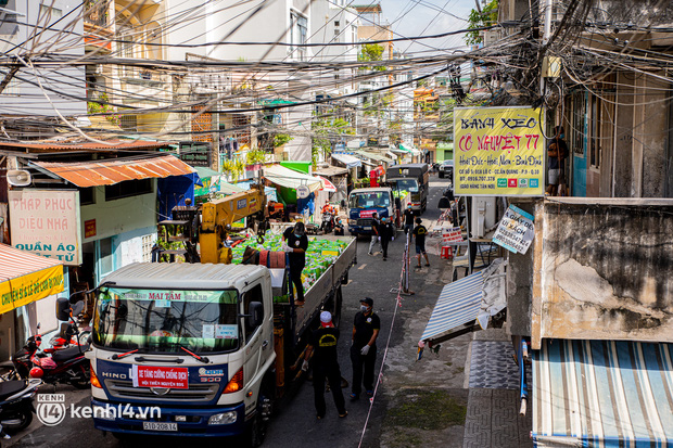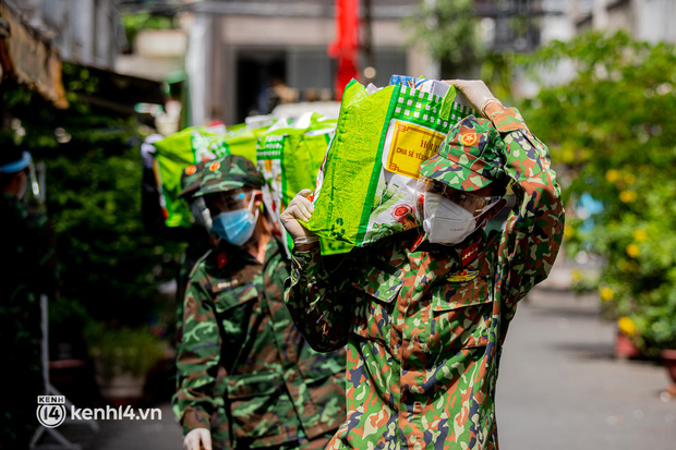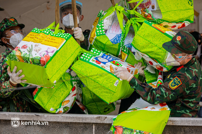 Sáng 6/9, 2 xe cần cẩu chở theo 2.000 phần quà của đội thiện nguyện BDS cùng hàng chục chiến sĩ bộ đội của Trung đoàn Gia Định và Sư đoàn 302 đã tới chung cư Ấn Quang (phường 9, quận 10) phát cho các hộ dân ở đây.