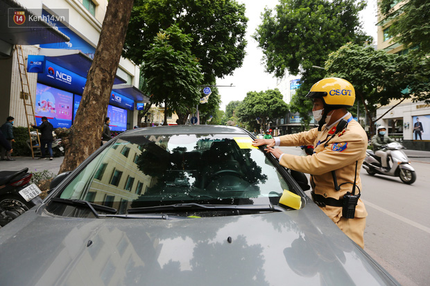 16/12/2020 01:33Ảnh, clip: CSGT Hà Nội ra quân xử lý, dán thông báo phạt nguội trên kính ô tô dừng đỗ sai quy định