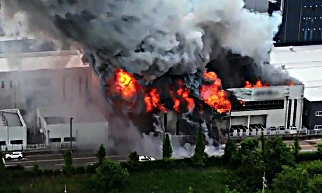 | Clip: Hiện trường vụ cháy nhà máy pin tại Hàn Quốc (Nguồn: Chosun News) |