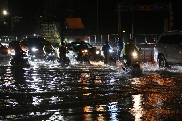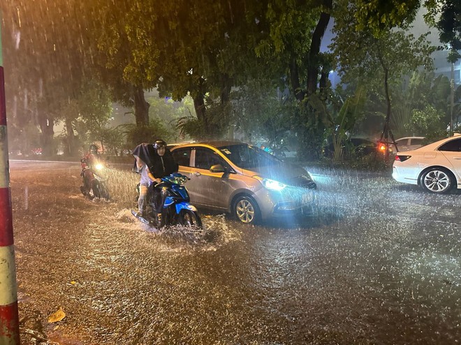 23/08/2024 13:02ẢNH, CLIP: Mưa gió sầm sập kéo giật lùi cả người lẫn xe, nhiều tuyến phố Hà Nội ngập lụt trong đêm