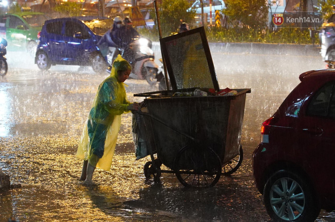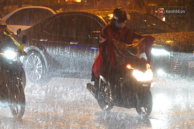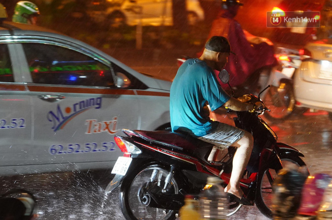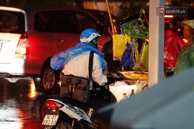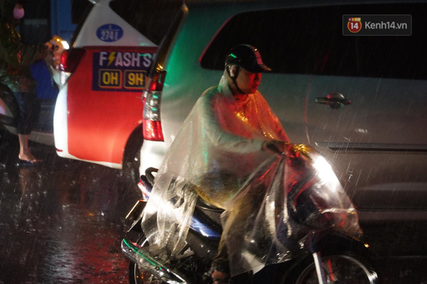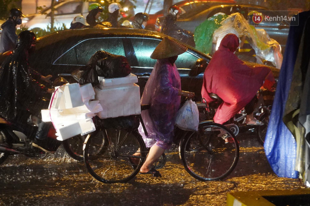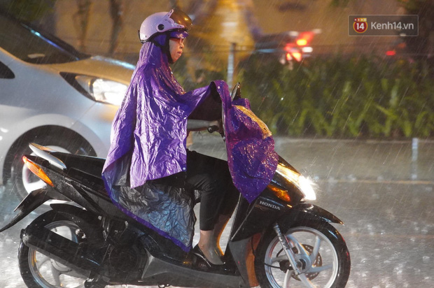 Nhiều người dù đã mặc áo mưa nhưng vẫn ướt sũng bởi cơn mưa quá lớn.