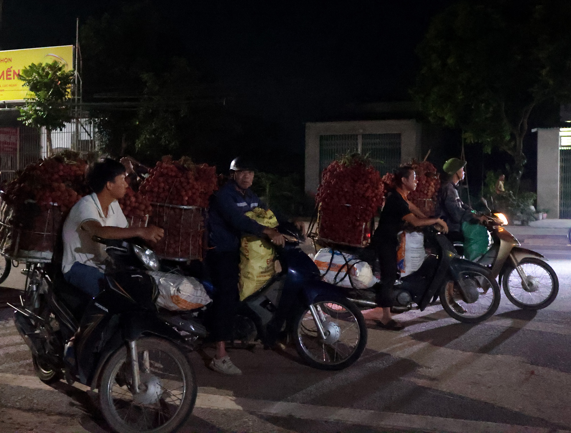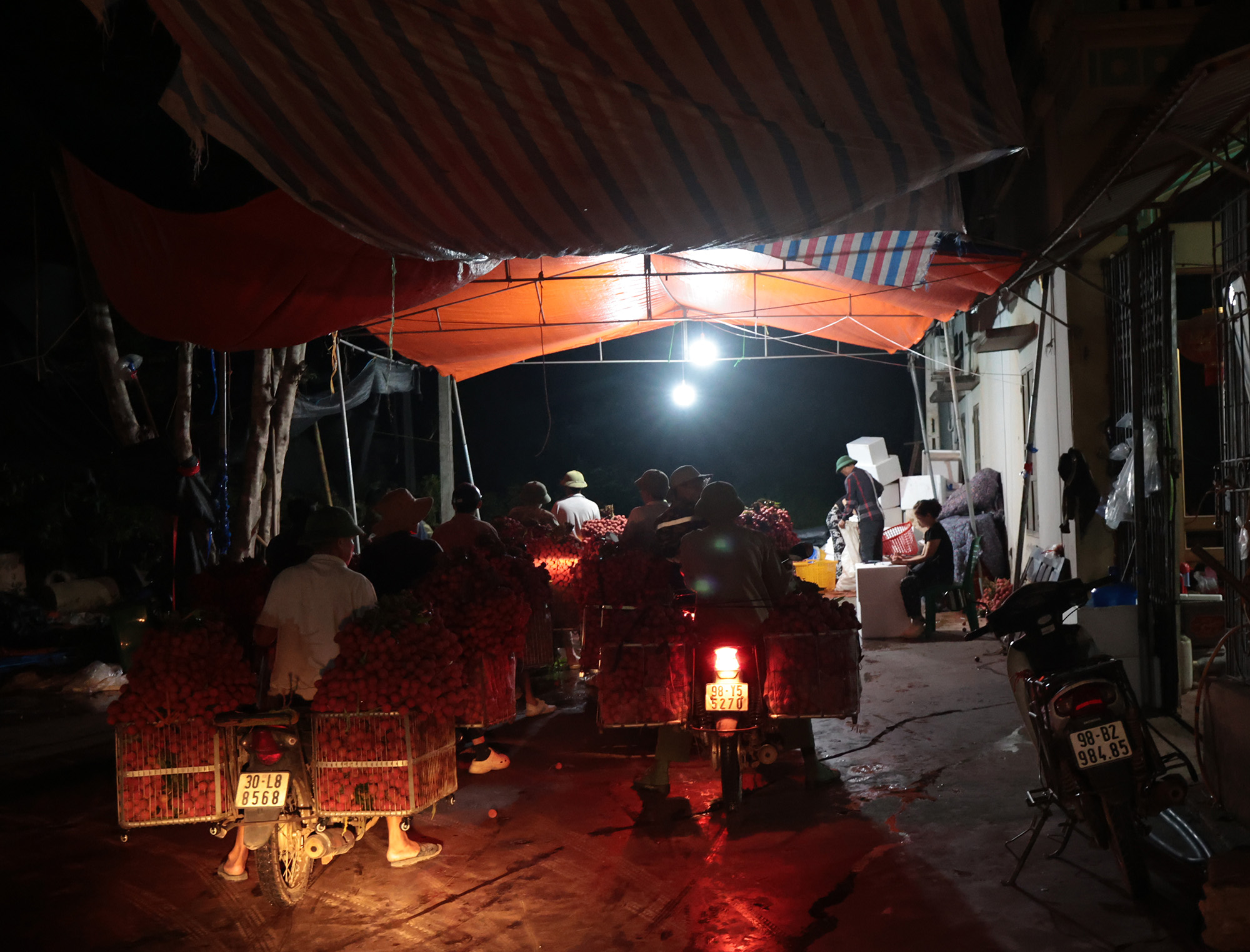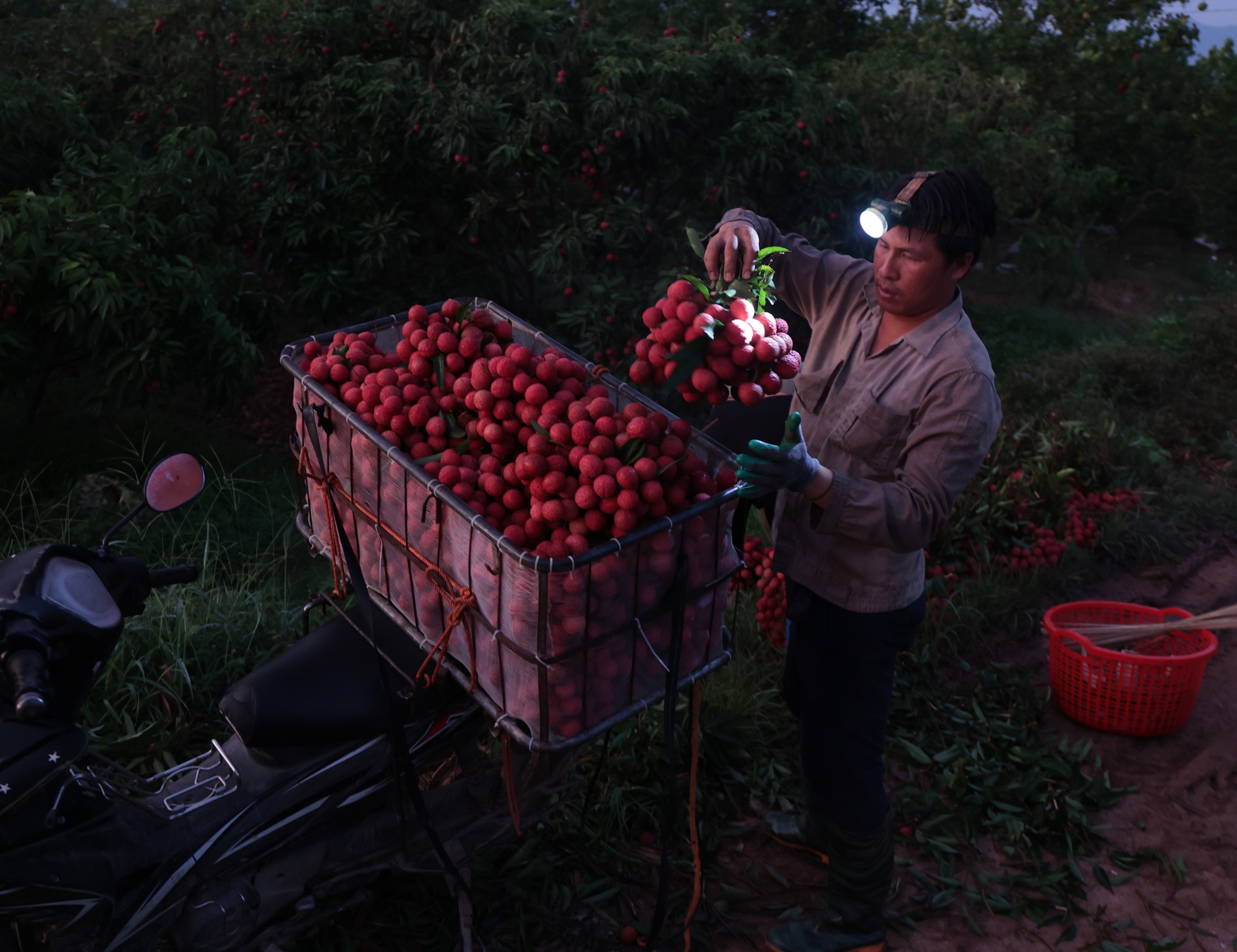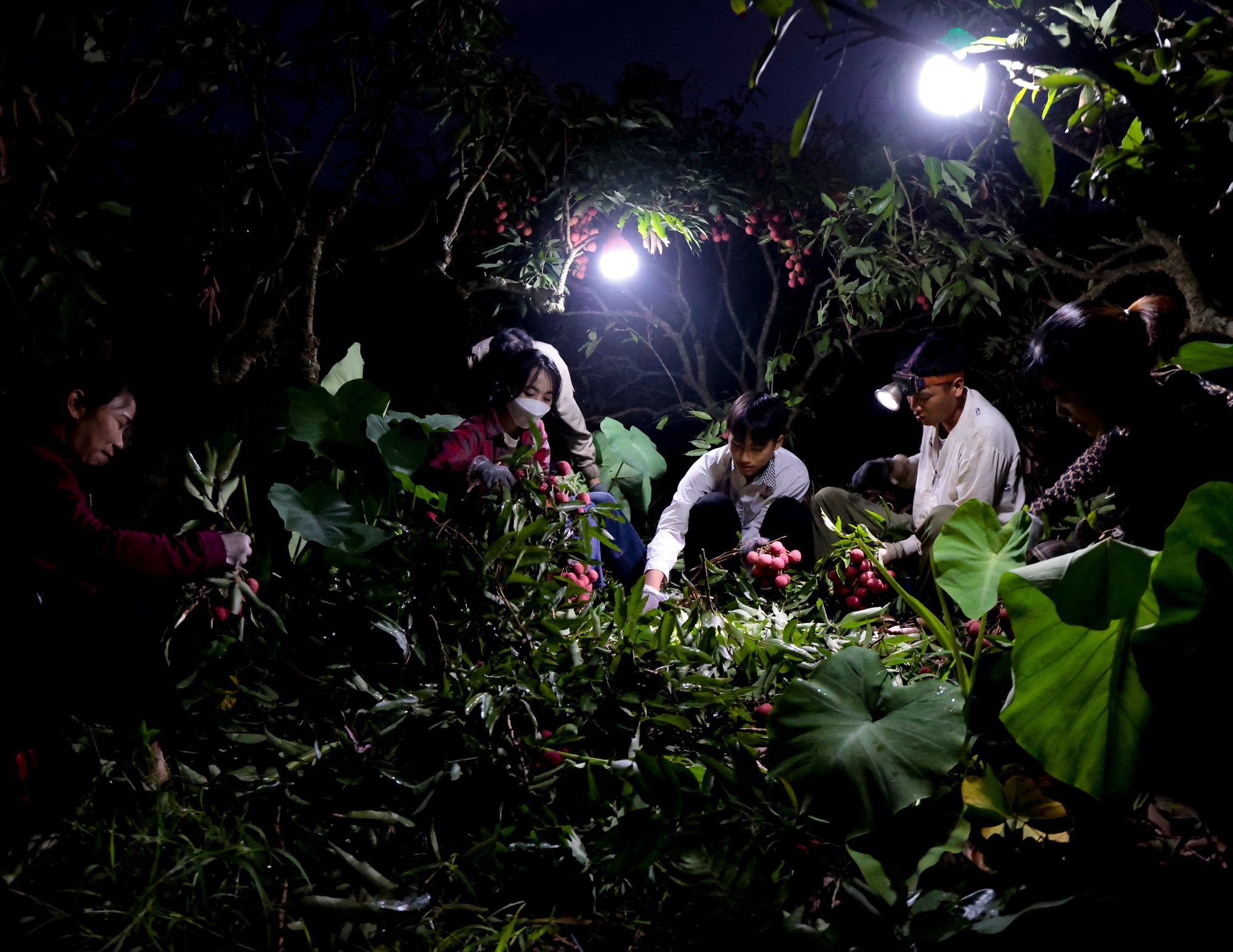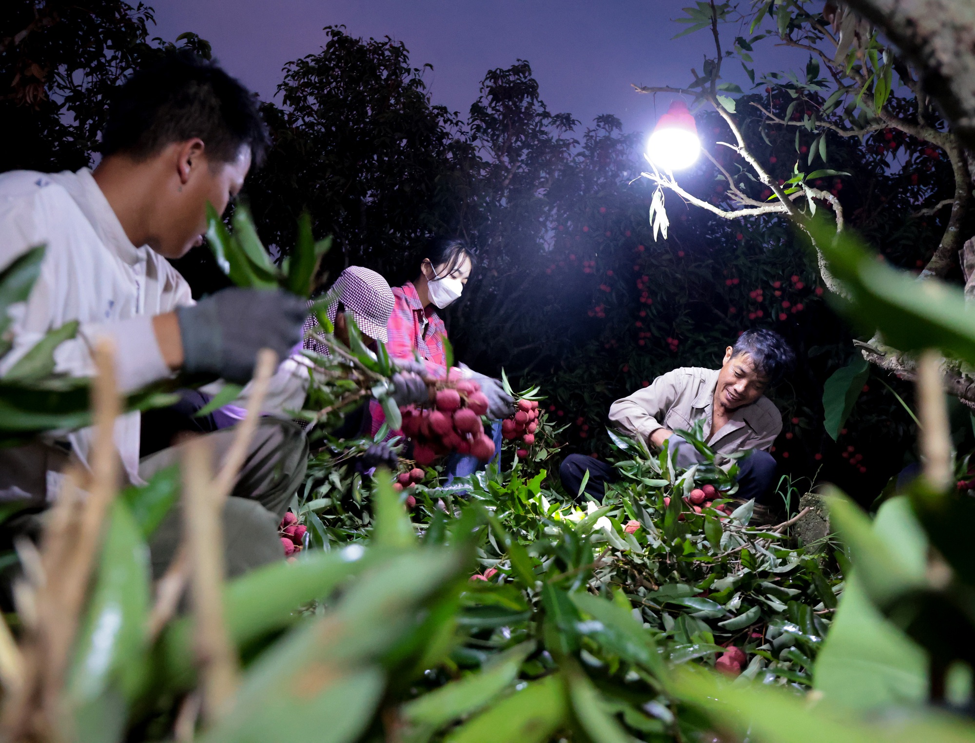 Với những gia đình ít người, công việc thu hoạch vải phải bắt đầu từ chiều hoặc tối hôm trước. Đến khoảng 3 giờ sáng hôm sau, họ lại dậy sớm để tiếp tục hái cho đủ số lượng mang đi bán.