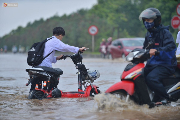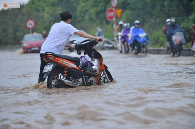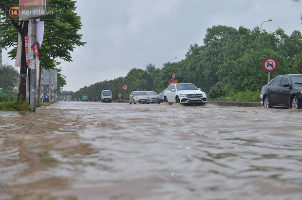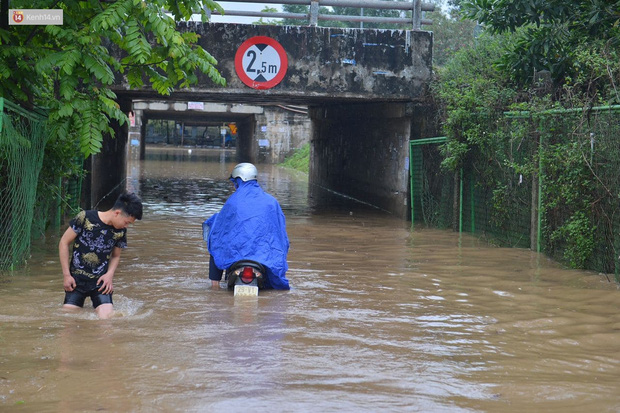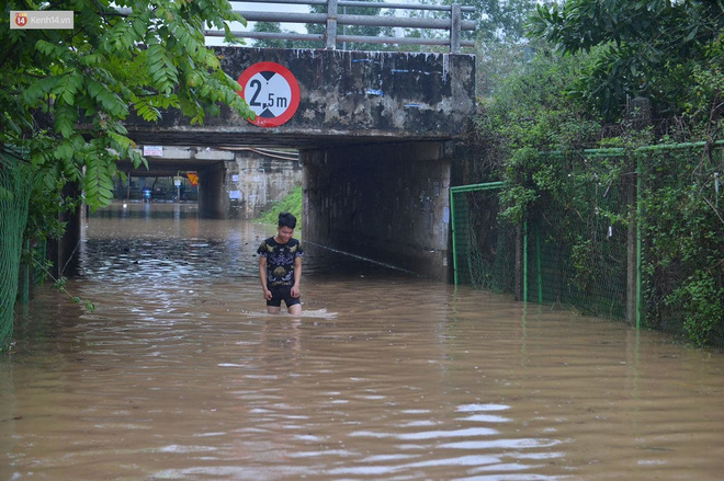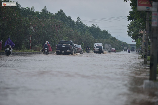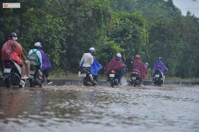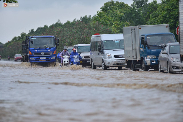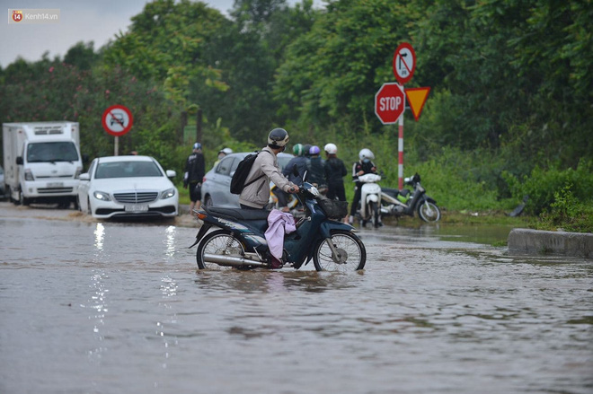Lãnh đạo Đội CSGT số 11 cho biết, vào sáng cùng ngày, do ảnh hưởng của mưa lớn nên tại khu vực cầu chui số 9 (Km18-km19, 2 bên đường gom của Đại lộ Thăng Long, huyện Quốc Oai) bị ngập úng sâu, khiến nhiều phương tiện gặp khó khăn khi di chuyển qua đây.