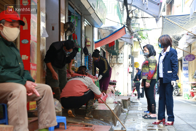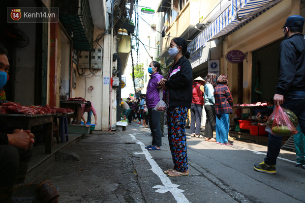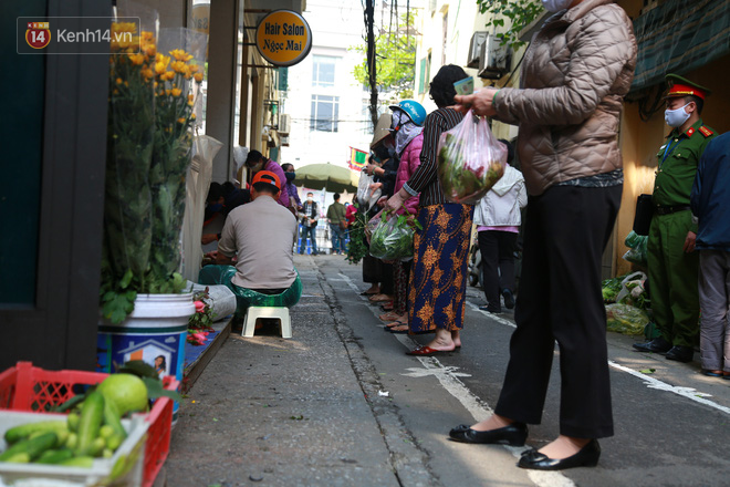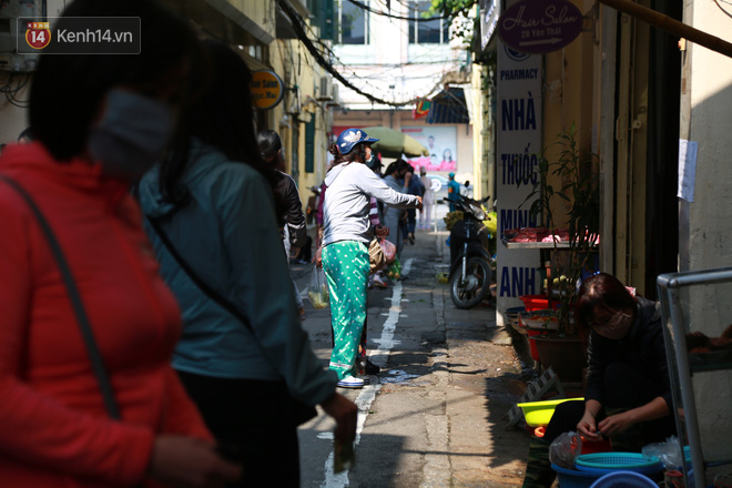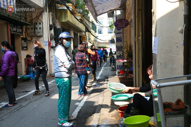 Phố Yên Thái (phường Hàng Gai, quận Hoàn Kiếm, Hà Nội) dài khoảng 150 mét nhưng thường tập trung rất đông người dân mua bán thực phẩm hàng ngày. Nhằm siết chặt cách ly xã hội, UBND phường đã cho triển khai cách làm vô cùng độc đáo là kẻ vạch sơn, người mua đứng sau vạch sơn để mua hàng còn người bán từ trong nhà bán ra.