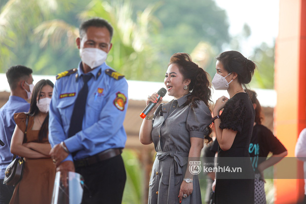 Chiều 31/10, bà Phương Hằng đã có mặt tại khu du lịch Đại Nam để giao lưu với du khách. Đội bảo vệ của nữ doanh nhân làm việc nghiêm ngặt để ngăn cản fan quá khích lên sân khấu.