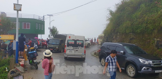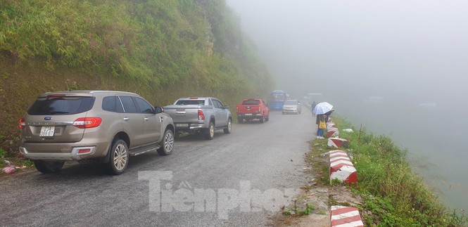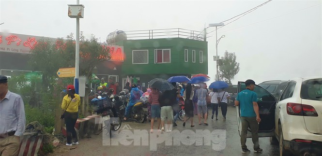 Ngày 13/10, từ sáng sớm, trên đèo Mã Pì Lèng (đoạn qua công trình trái phép Panorama) kẹt cứng xe, người chen chân "check in" công trình vi phạm này.