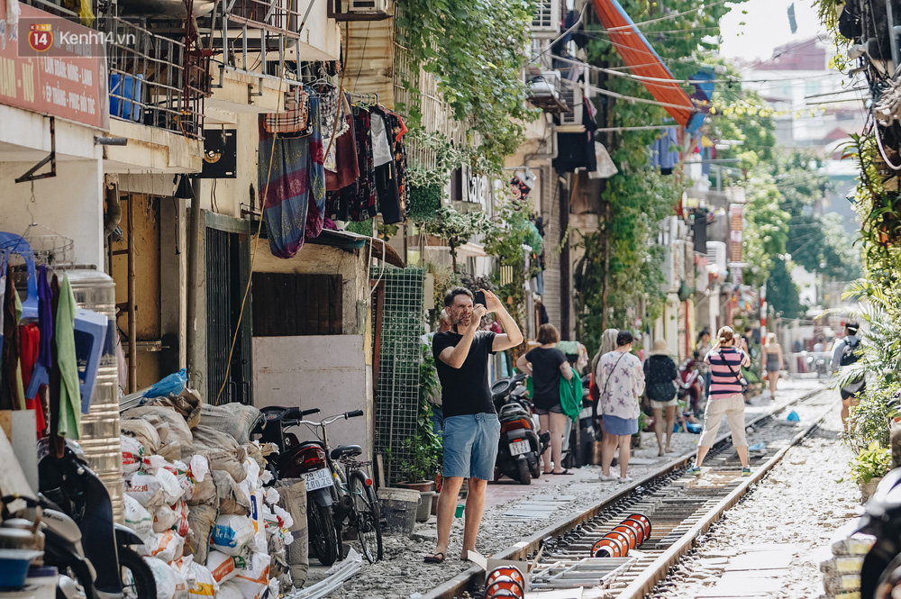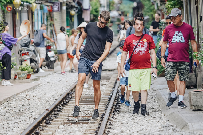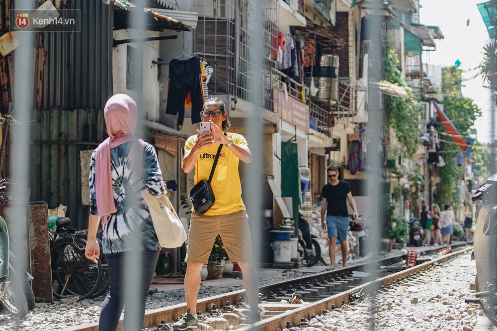 Sáng và trưa ngày 11/10 - một ngày sau khi phố đường tàu chính thức bị xóa sổ, các quán cà phê nằm "im lìm" đóng cửa. Thế nhưng, theo ghi nhận của chúng tôi, rất đông du khách nước ngoài vẫn tìm đến chụp ảnh check-in giữa đường sắt.