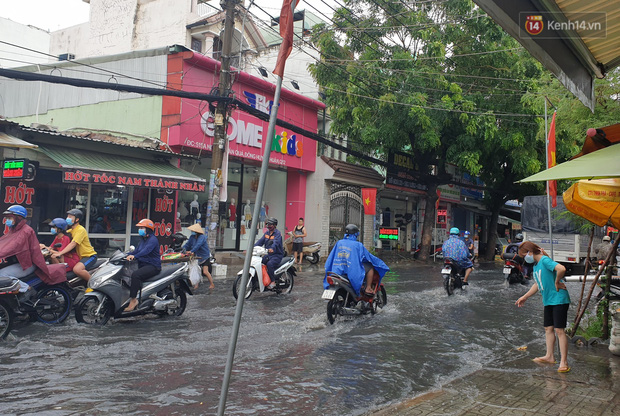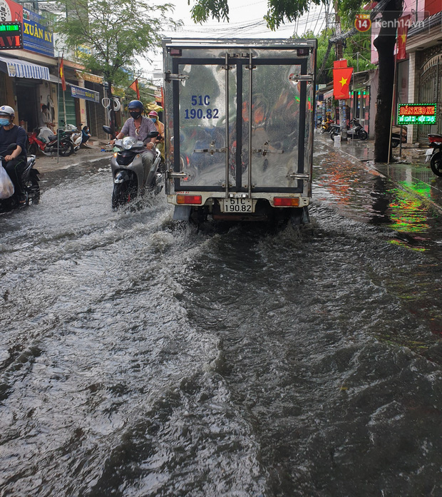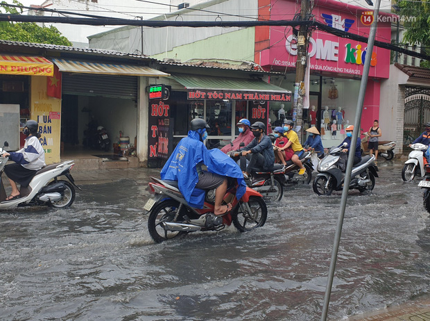 Ghi nhận tại quận 12 mưa rất lớn khiến một số tuyến đường như Nguyễn Văn Quá, Phan Văn Hớn,... bị ngập nặng, giao thông gặp nhiều khó khăn.
