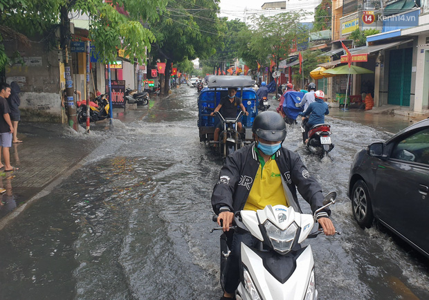 "Con đường này cứ mưa tầm hơn 30 phút đã ngập rồi, nước chảy mạnh lắm nên đâu ai dám đi qua. Mưa ngập đường nên người dân cũng không buôn bán được gì, chỉ lo chống ngập. Mặc dù chưa ngập nhà nhưng nếu mưa lớn thêm chút nữa thì nhà thành nơi chứa nước rồi", một người dân trên đường Nguyễn Văn Quá chia sẻ.