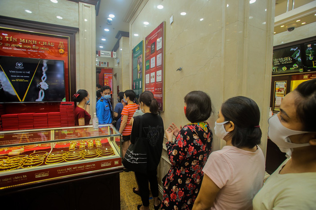 07/08/2020 20:42Ảnh: Giá vàng liên tục 'lên đỉnh', dân Hà Nội đổ xô đi bán nhưng vẫn kiên nhẫn xếp hàng, nghiêm túc phòng dịch