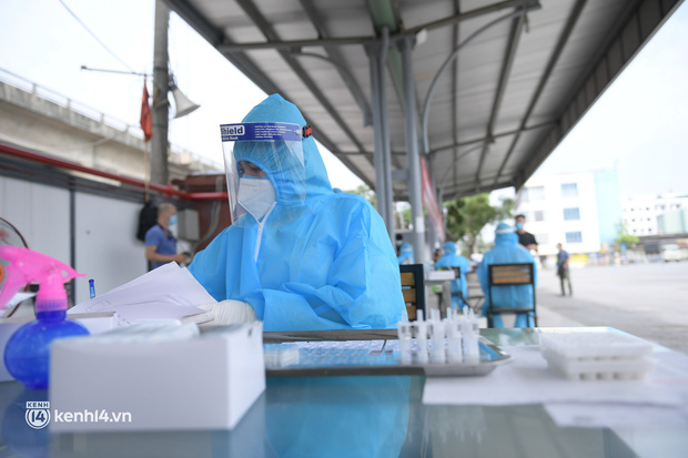 Chiều 12/8, ghi nhận của phóng viên tại bến xe Nước Ngầm (Hà Nội) lực lượng y tế đã được triển khai, tiến hành test nhanh kháng nguyên virus Sars-CoV-2 cho tài xế.
