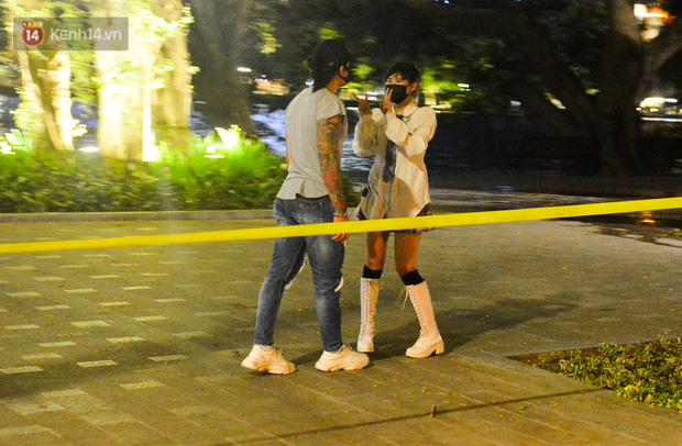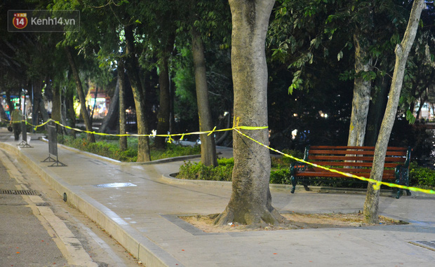 Lực lượng chức năng đã lập rào chắn, chăng dây quanh hồ Gươm để cấm người dân tập thể dục theo chỉ thị dừng triệt để hoạt động vui chơi, tập thể dục, tụ tập đông người tại công viên, vườn hoa và các địa điểm công cộng của UBND TP Hà Nội.