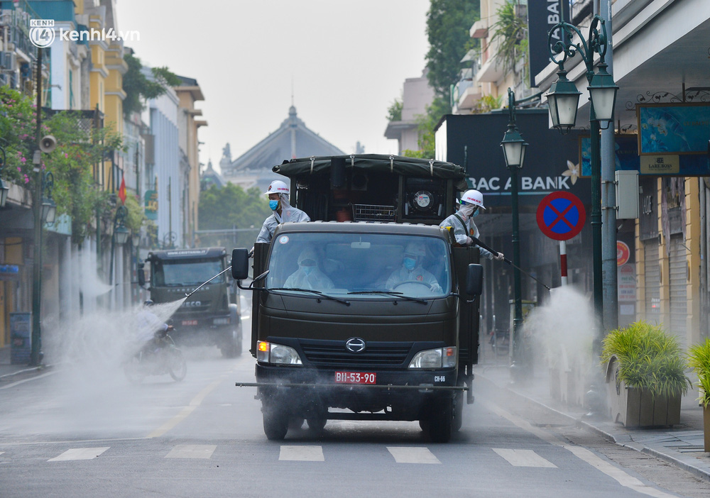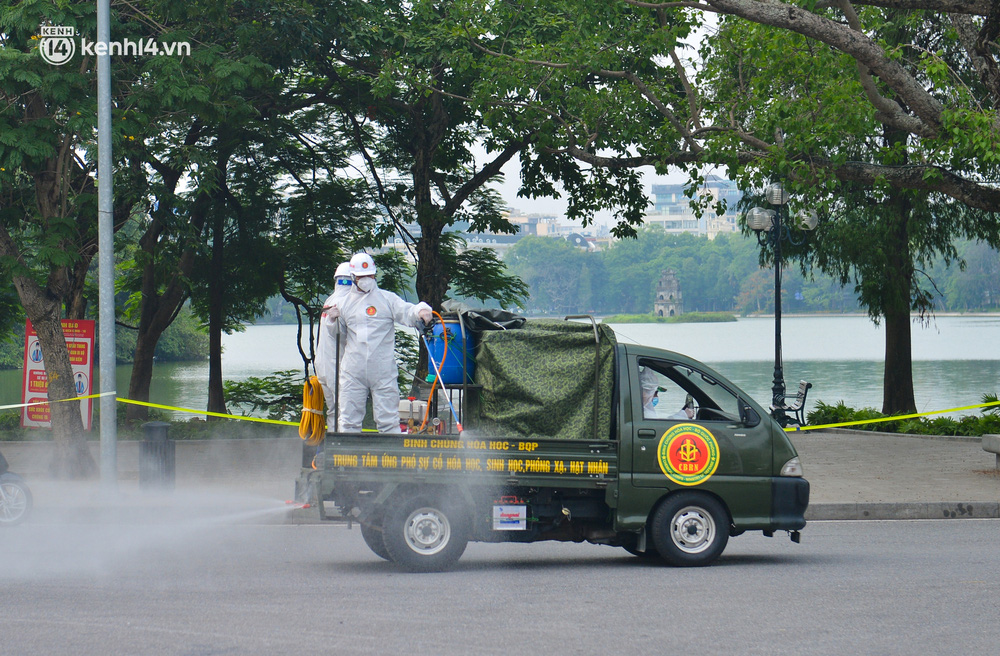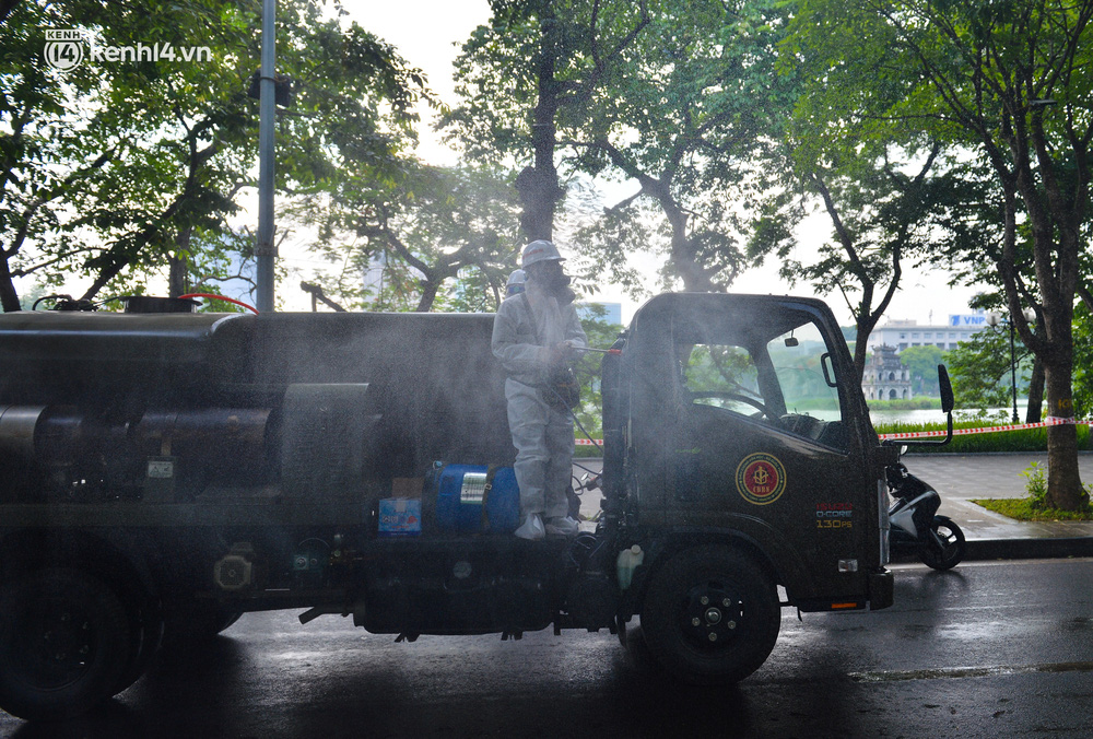 26/07/2021 17:10Ảnh: Hàng chục xe chuyên dụng bắt đầu phun khử khuẩn quanh Hồ Gươm và nhiều tuyến phố chính tại Hà Nội