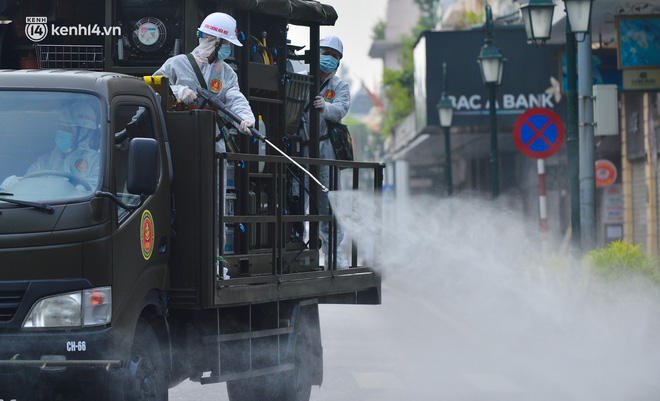 Để phòng chống nguy cơ lây lan dịch bệnh Covid-19 tại Thủ đô Hà Nội, sáng nay, lực lượng chức năng đã bắt đầu phun khử khuẩn tại quận Hoàn Kiếm.