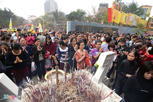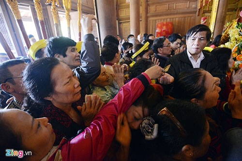 Bên trong, người dân chen chân làm lễ, đặt tiền công đức. |