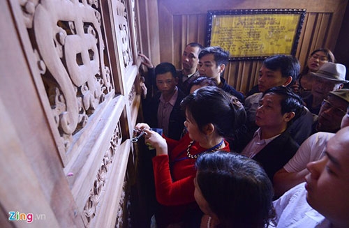 Chị Tuyết (Ban quản lý gò Đống Đa) cho biết, do sức ép người dân đến tham quan quá đông nên tạm thời phải khóa cửa gian trong. |
