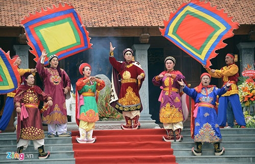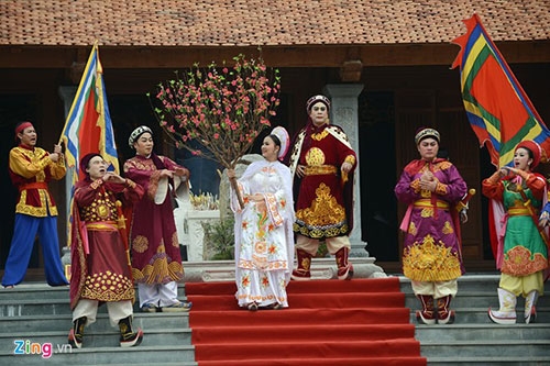 Như thường lệ, hình ảnh công chúa Ngọc Hân và vua Quang Trung lại được tái hiện bởi các nghệ sĩ nhà hát chèo Hà Nội. |