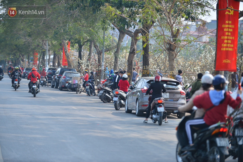 Hàng trăm người đổ đến đường Lạc Long Quân (Tây Hồ, Hà Nội) mỗi ngày tìm mua cành hoa lê về chơi Rằm tháng Giêng.