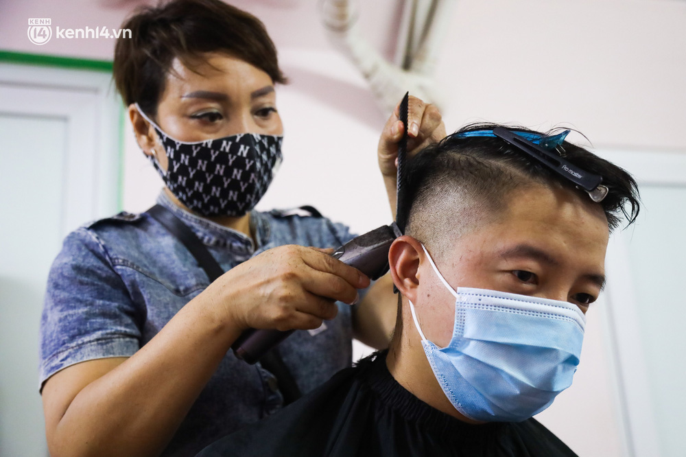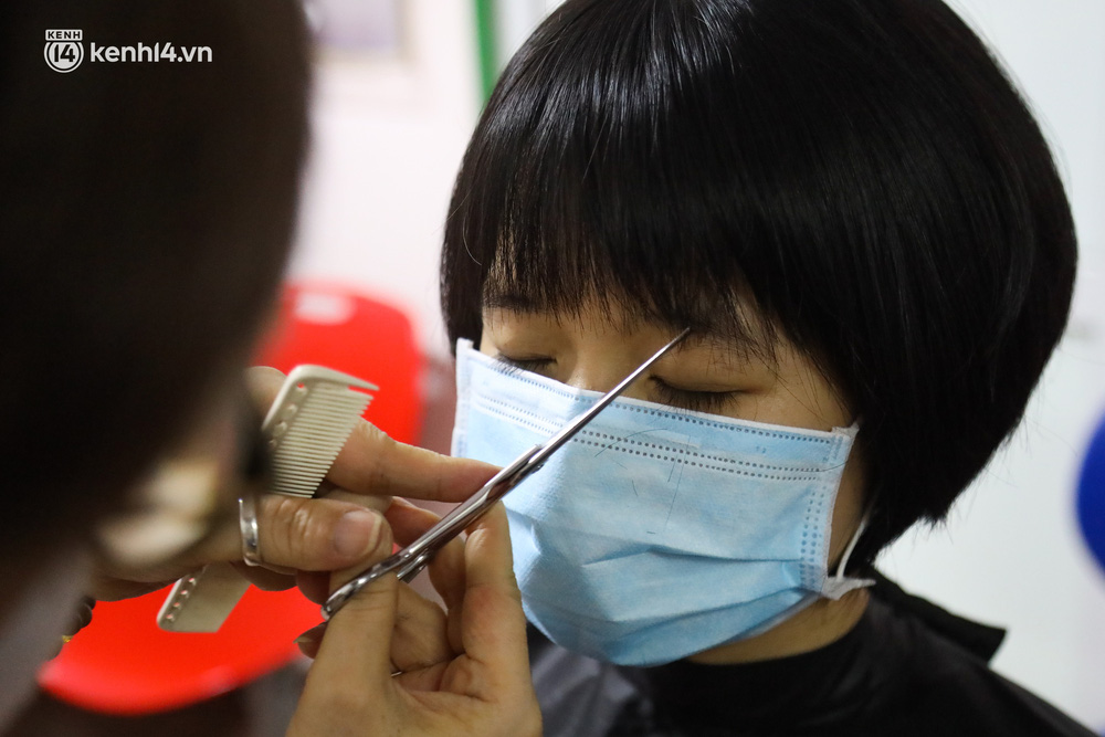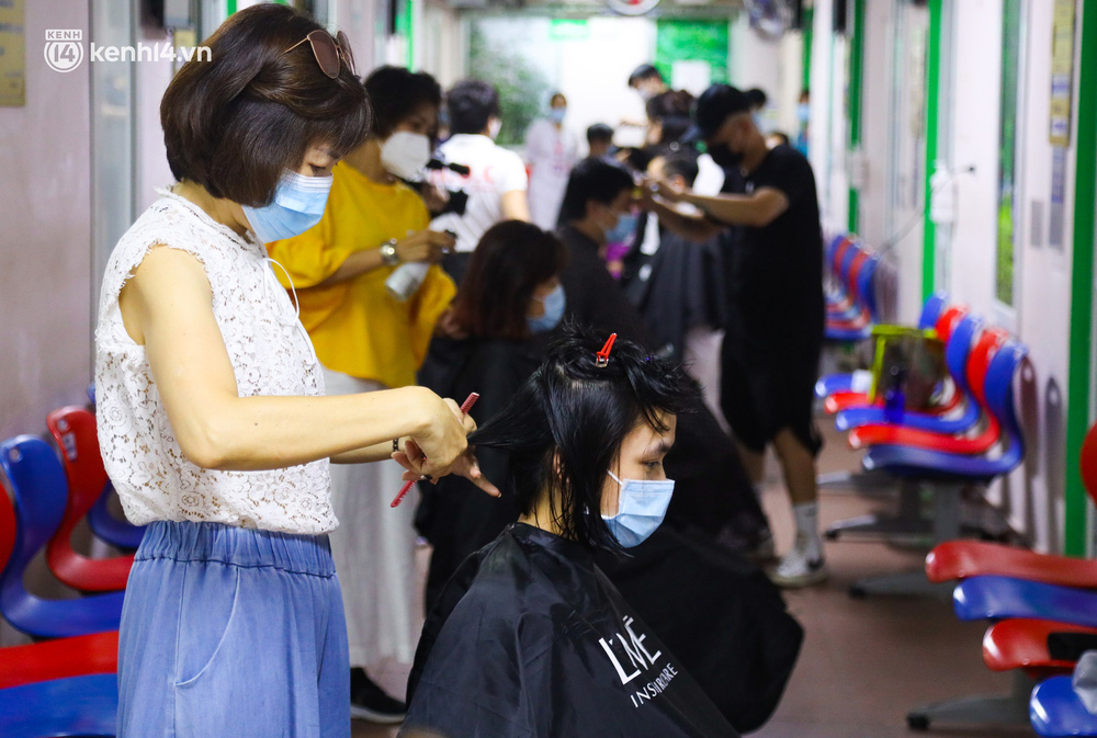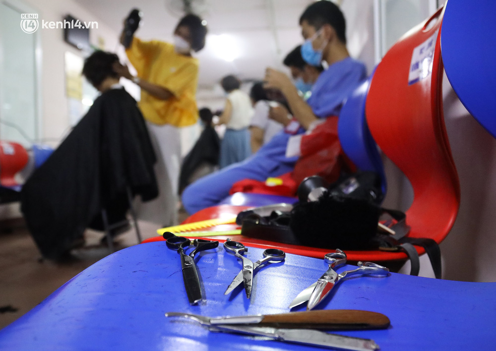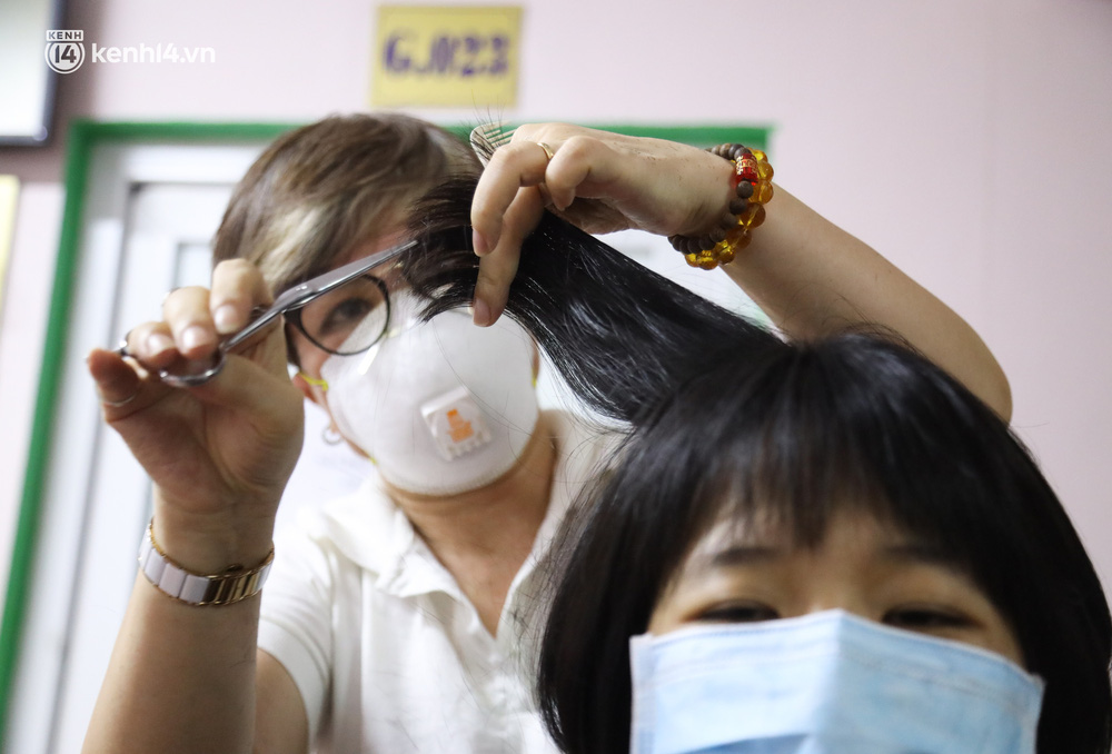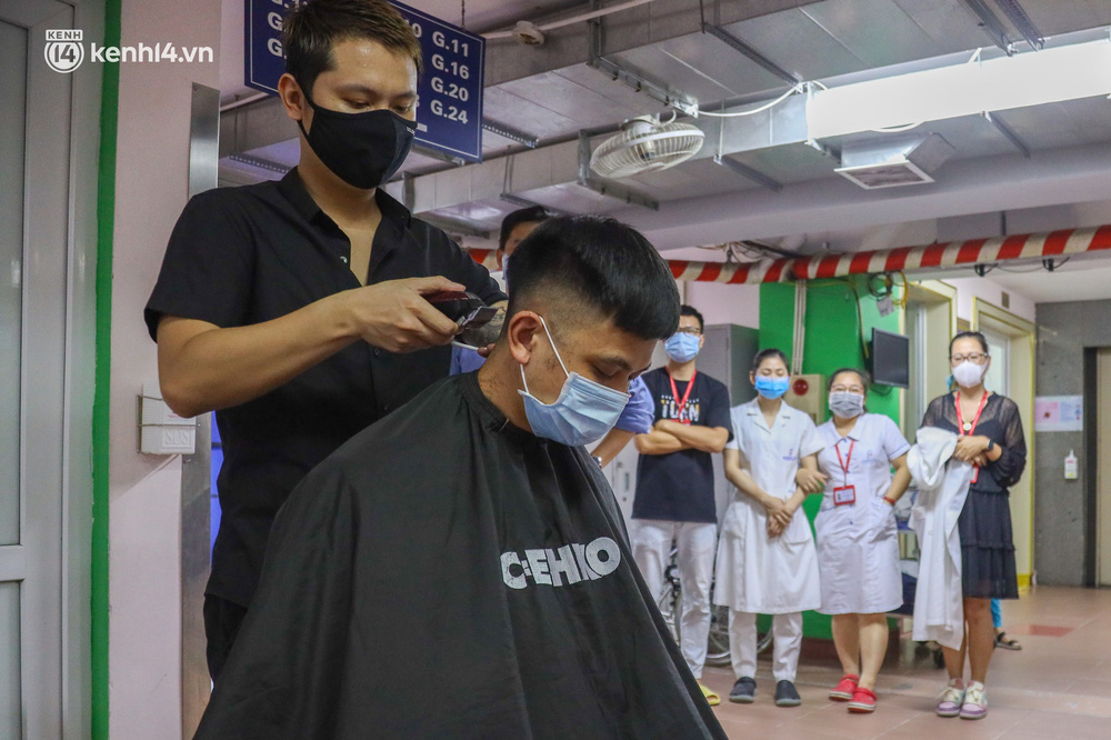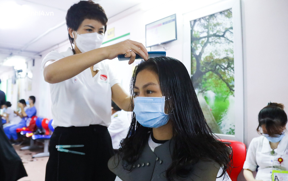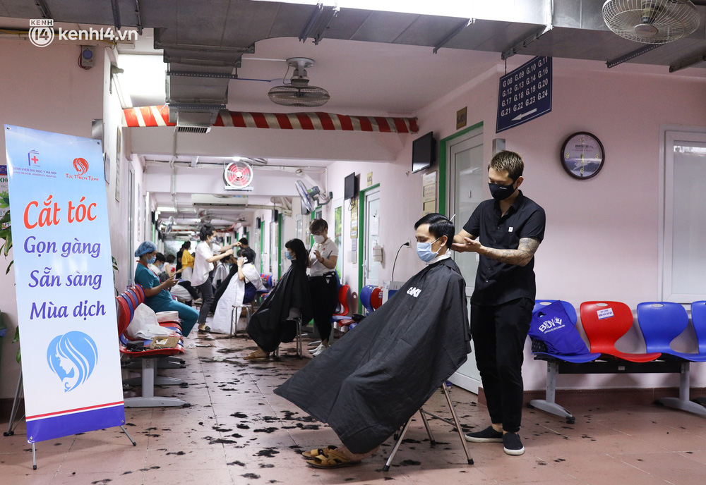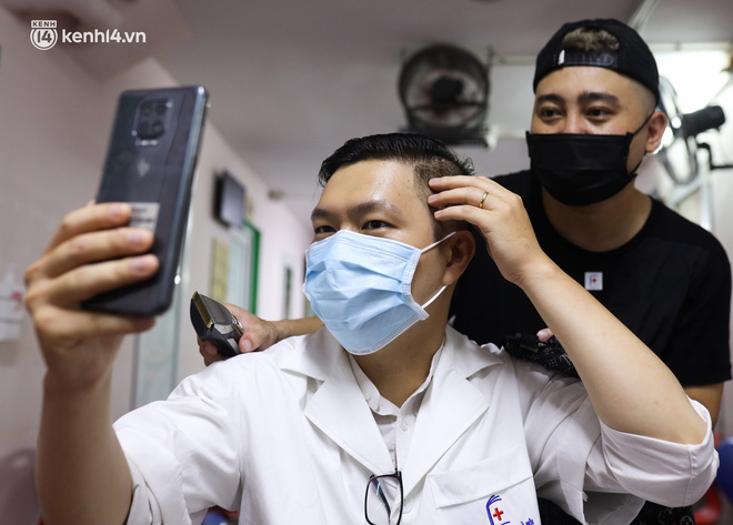 Trước khi tham gia chống dịch tại Bệnh viện dã chiến 500 giường ở Hoàng Mai (Hà Nội), các y, bác sĩ của Bệnh viện Đại học Y Hà Nội phải cắt đi mái tóc của mình.