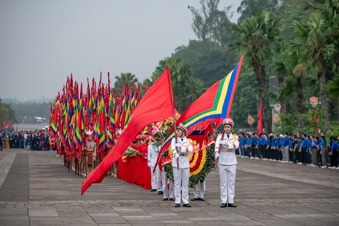 Tưởng nhớ về Tổ tông, các Vua Hùng đã khơi mạch nguồn dân tộc, lập nên Nhà nước Văn Lang; khai sơn, phá thạch, dựng cơ nghiệp qua mười tám vương triều; đặt nền móng để quốc gia, dân tộc được muôn đời thịnh trị. Đời nối đời trải mấy nghìn năm, Vua thương yêu dân, chung sống hòa thuận; cả nước một lòng, toàn dân đoàn kết, trọn nghĩa đồng bào.