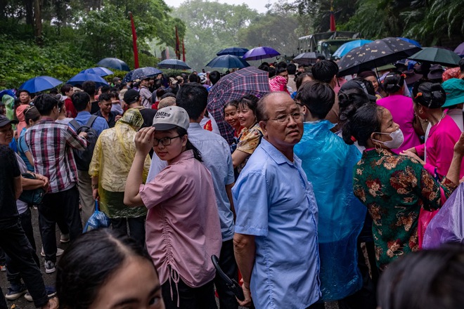 18/04/2024 20:50Ảnh: Hàng vạn du khách chen chân lên đền Hùng dâng hương mặc trời mưa tầm tã, nhiều người chờ xuyên đêm để dự lễ