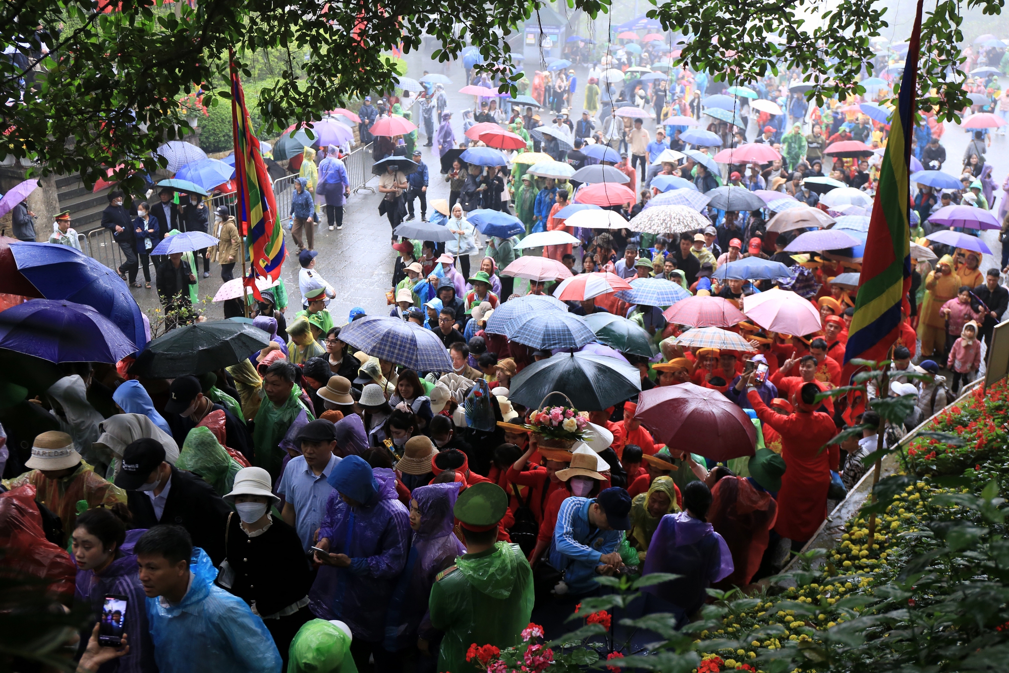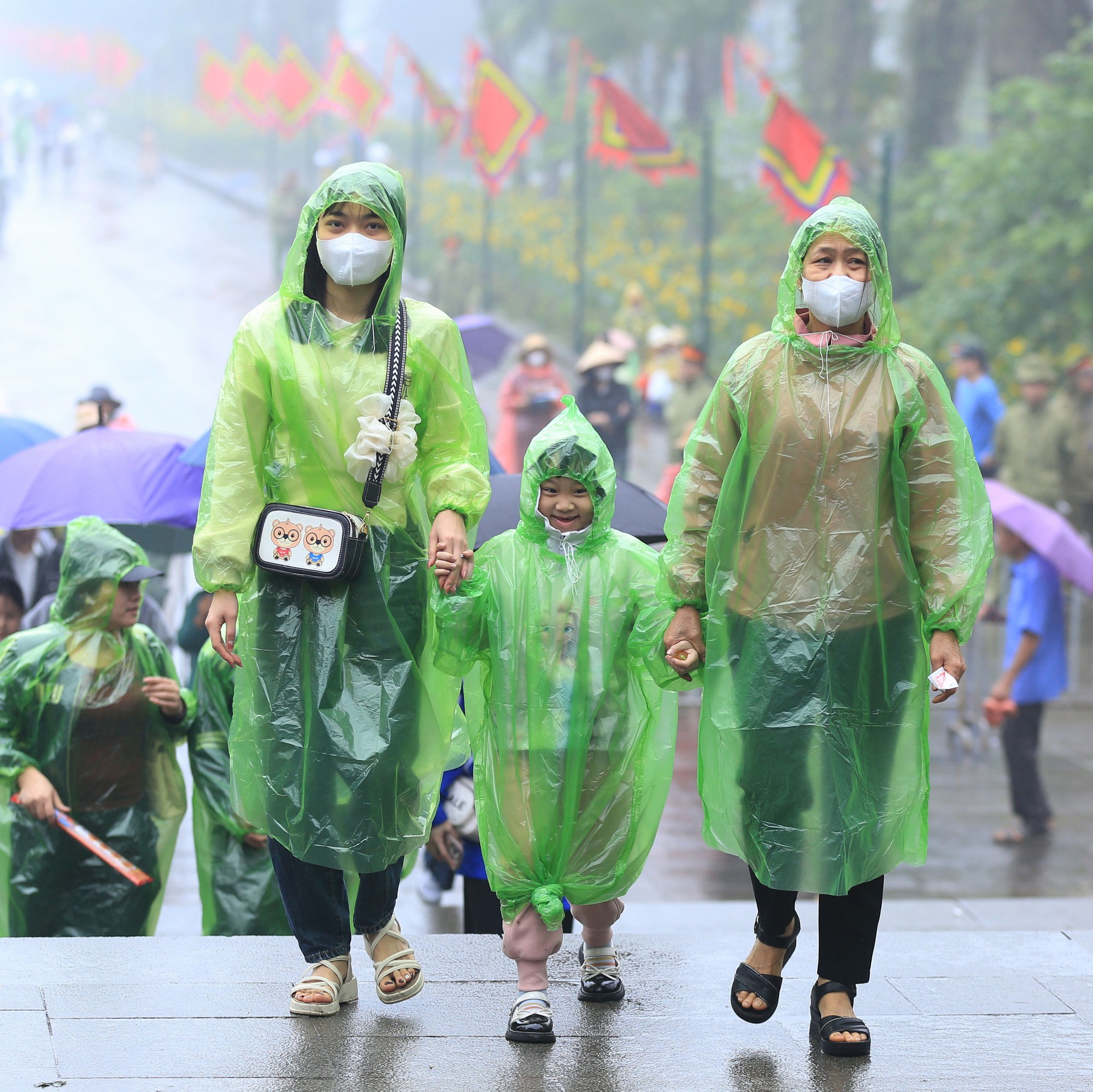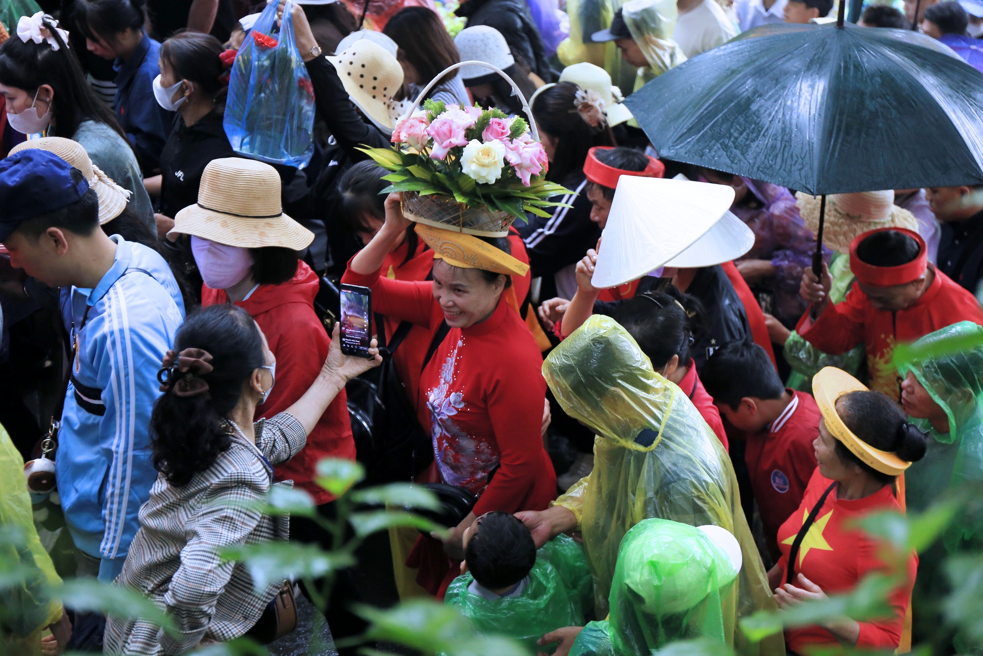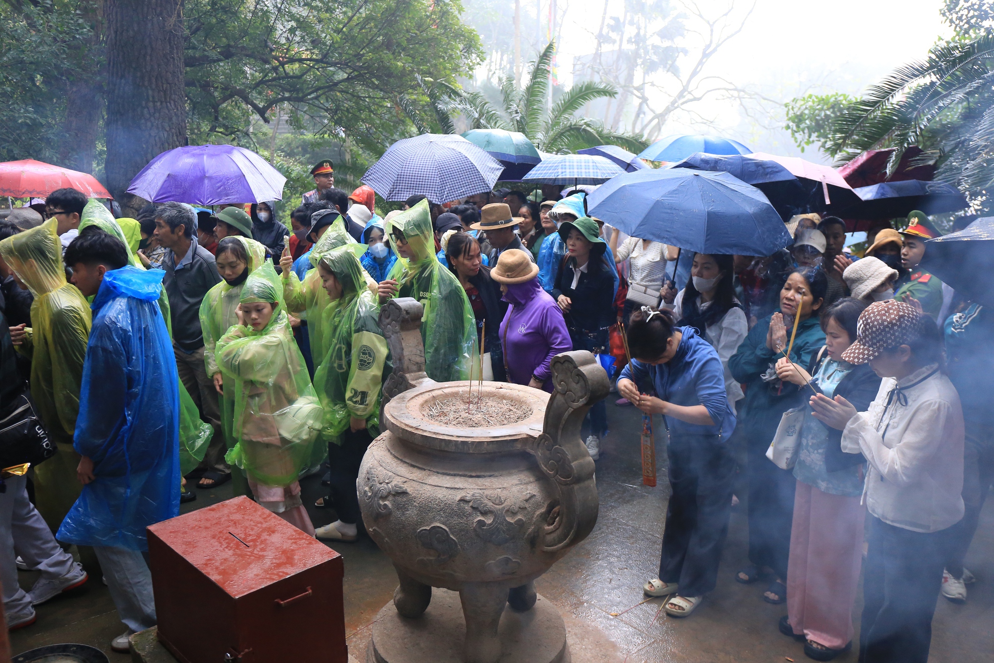 07/04/2025 20:43Ảnh: Hàng vạn du khách chen chân tới đền Hùng dâng hương mặc trời mưa, nhiều em nhỏ thích thú theo cha mẹ dự lễ