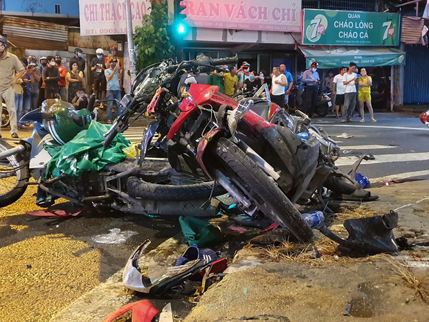 Vụ tai nạn bất ngờ khiến nhiều người bị thương nằm la liệt trên đường, ghi nhận tại hiện trường có khoảng 8 xe gắn máy đang bị hỏng, nhiều người bị thương được đưa đi cấp cứu.