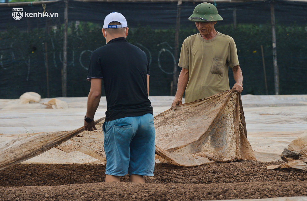 Thời gian người dân mua hoa nhiều nhất từ mùng 10-14 âm lịch. Tuy nhiên, đây là lúc vẫn giãn cách xã hội nên chúng tôi đành phải cắt bỏ để chờ lứa hoa sau", anh Chu Trần Yên, người dân làng hoa Tây Tựu tâm sự.