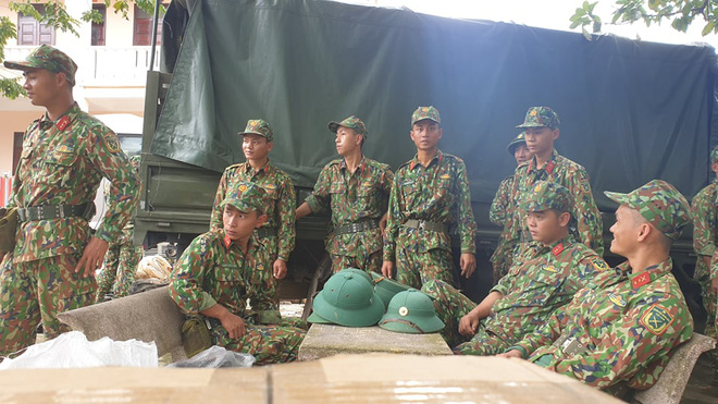 Hiện, quân đội tập kết người và những vật dụng cần thiết băng rừng vào hiện trường tham gia công tác tìm kiếm nạn nhân.